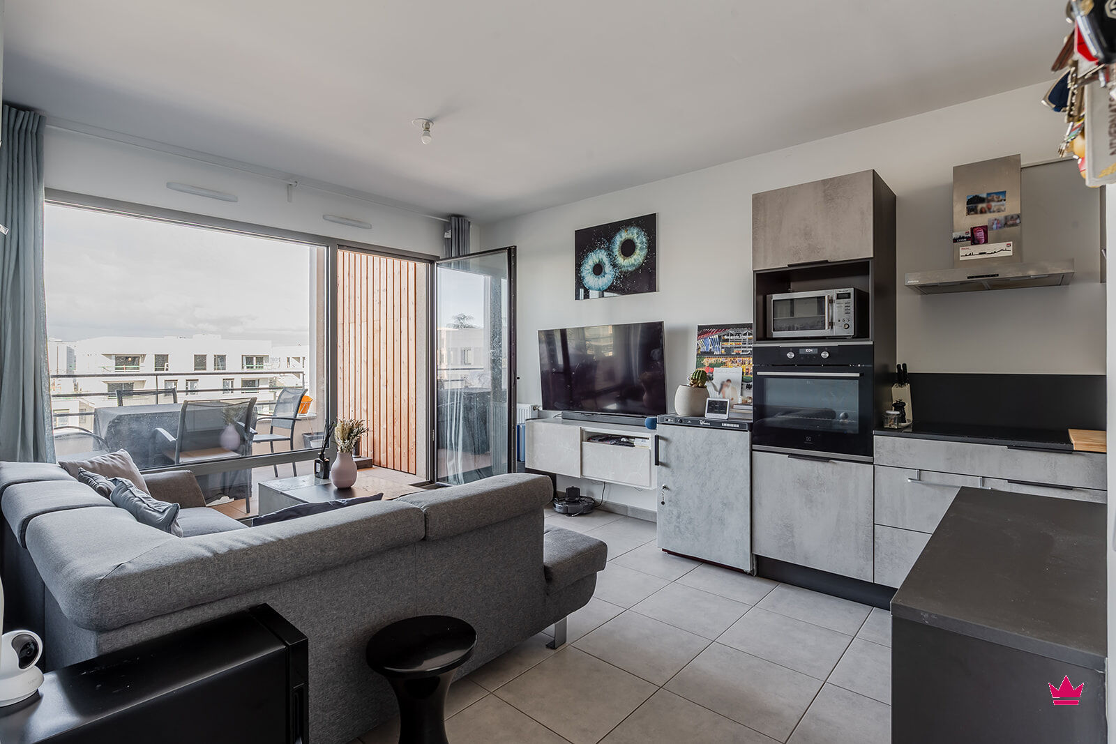 Dès l'entrée, vous serez séduit par un séjour spacieux, baigné de lumière grâce à son exposition ouest, offrant une atmosphère chaleureuse et agréable tout au long de la journée. La cuisine, quant à elle, est entièrement aménagée et équipée, parfaitement intégrée à l'espace de vie.