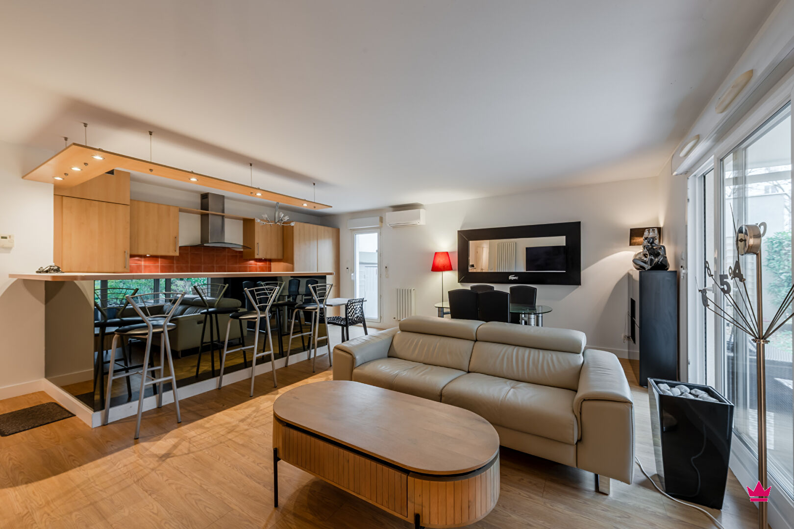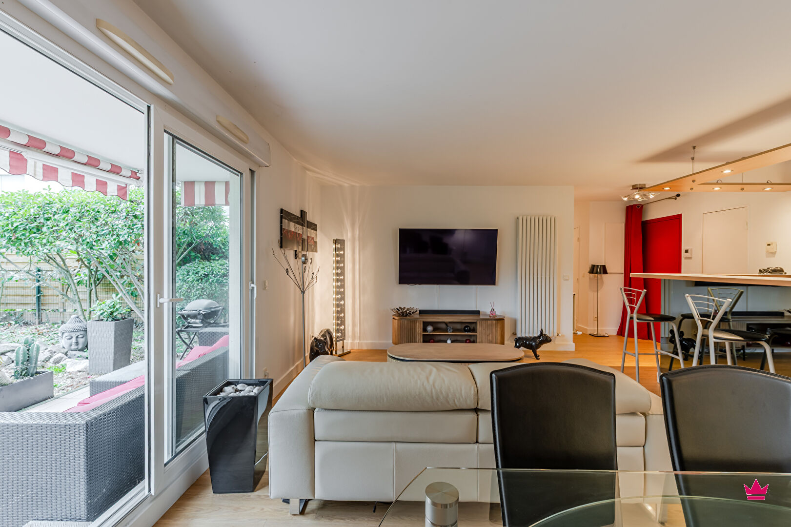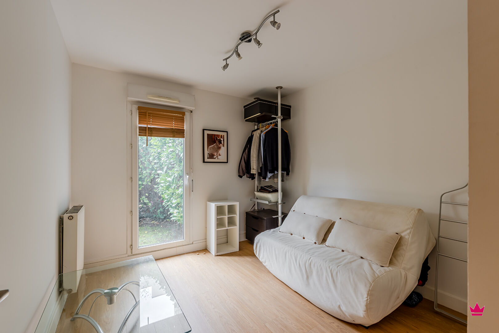 La cuisine est ouverte et aménagée, les deux chambres offrent de beaux volumes avec placards muraux et accès au jardin privatif, la salle d'eau est moderne et les toilettes sont séparées.