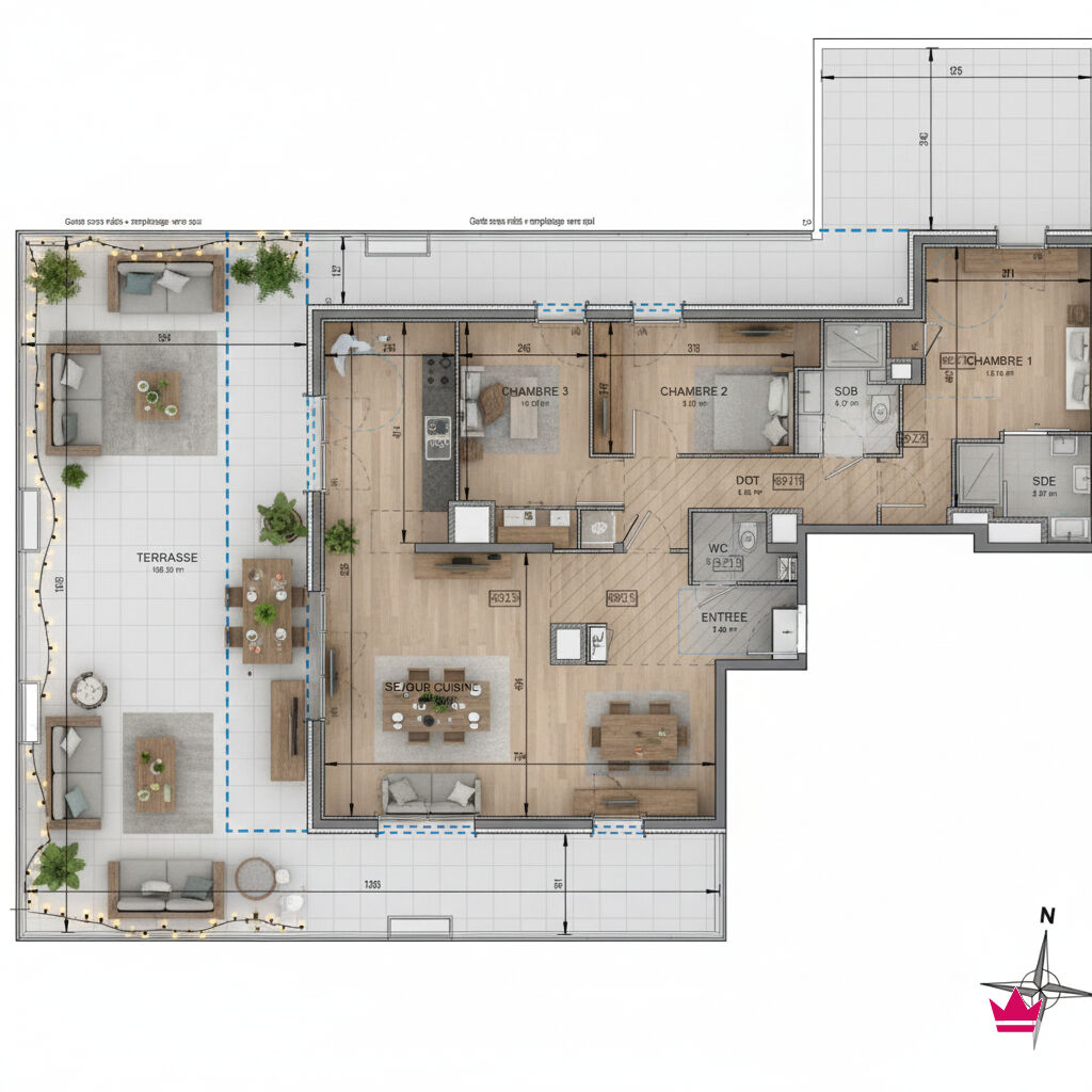 Rare : Toit-terrasse de 98m² avec une terrasse 3 expositions de 108m²!