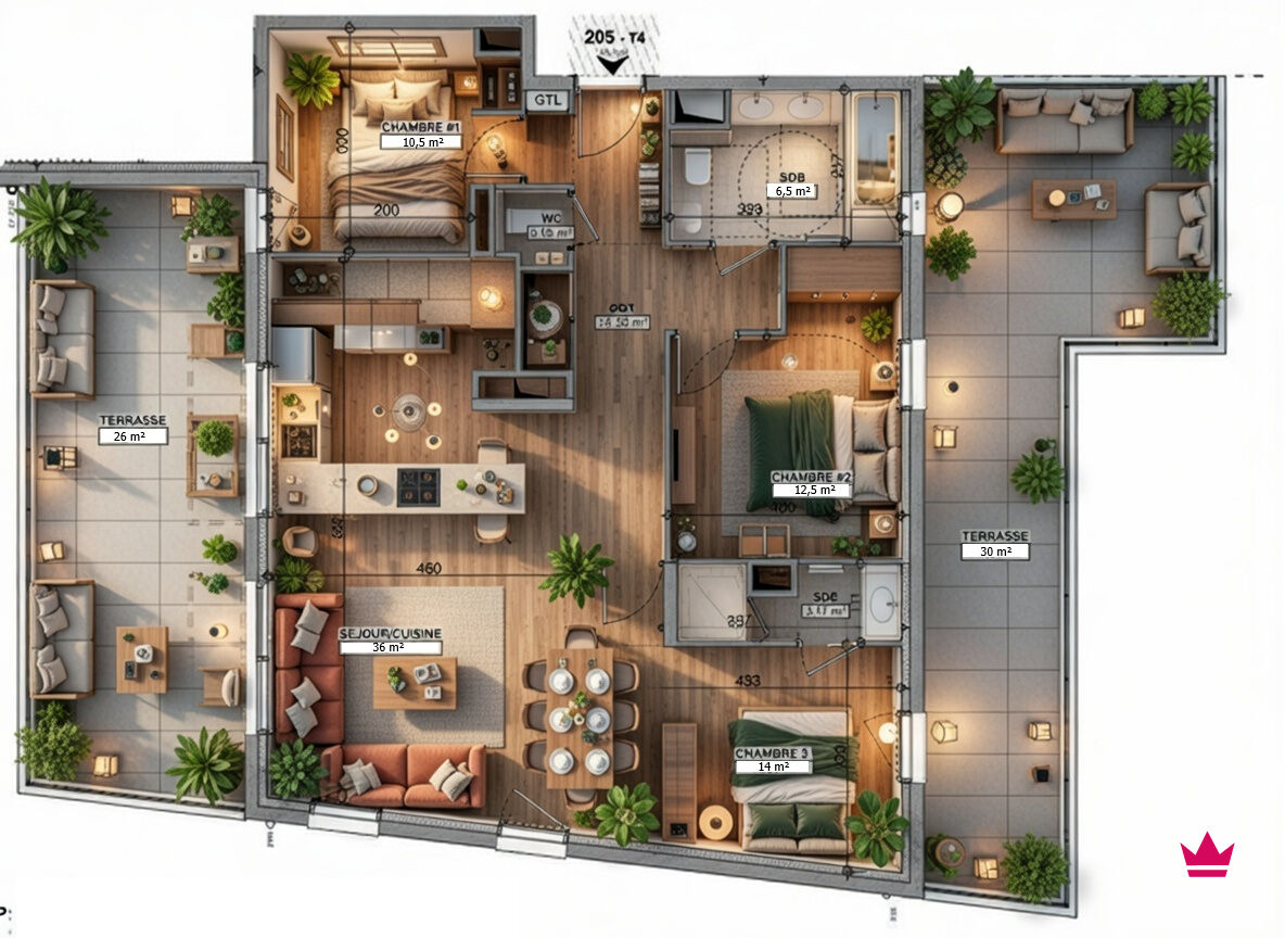 Sublime appartement 3 chambres, 95m² habitables