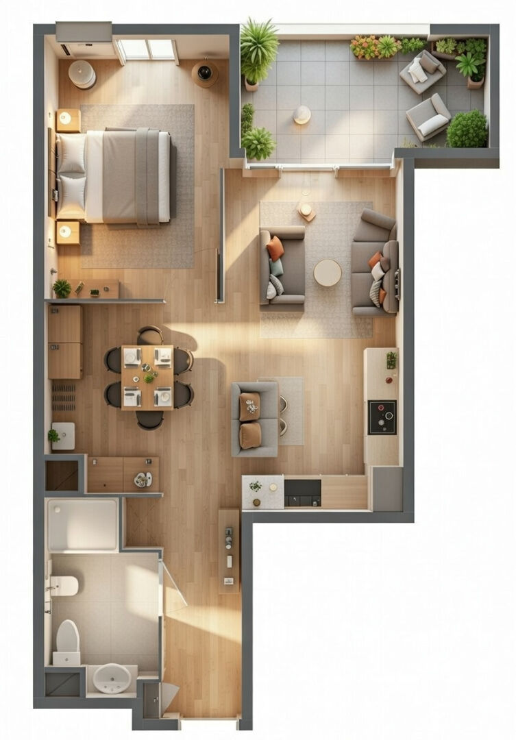 Séjour/Cuisine : 26,40 m² ? Un espace convivial et lumineux pour cuisiner et recevoir.