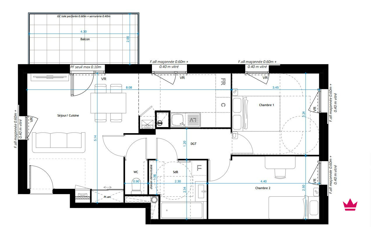 Découvrez ce bel appartement T3 de 60.11m². Il offre une belle entrée avec placard, un séjour de 27.15m² ainsi que 2 chambres de 11.19m² et 10.86m². Vous y trouverez également une salle de bain ainsi que des WC inépendants.