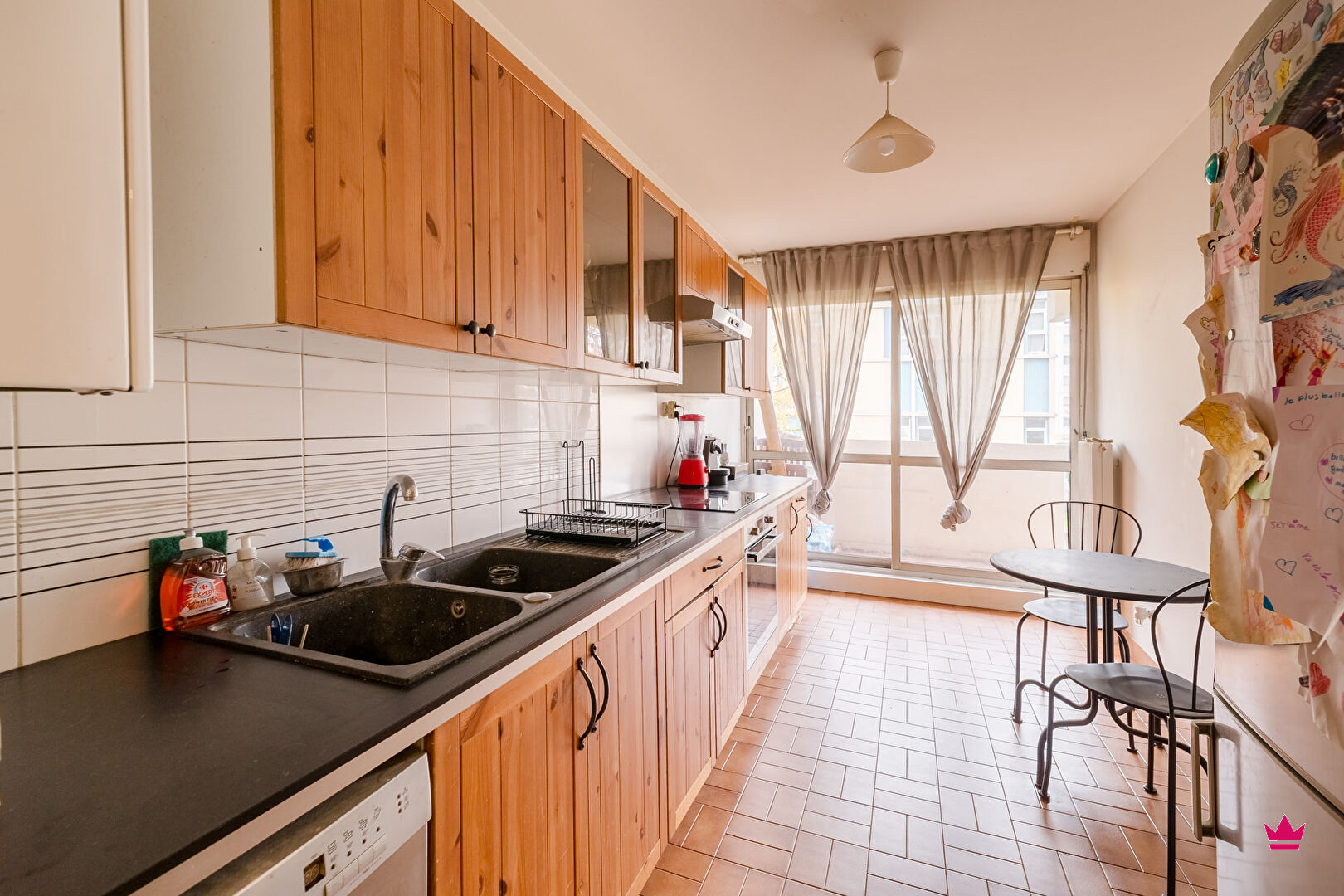 ème chambre) ouvrant sur un balcon de 10 m² , la cuisine indépendante équipée est fonctionnelle. L'espace nuit comprend trois chambres, deux salles d'eau, un WC séparé et un grand cellier pratique pour le rangement.