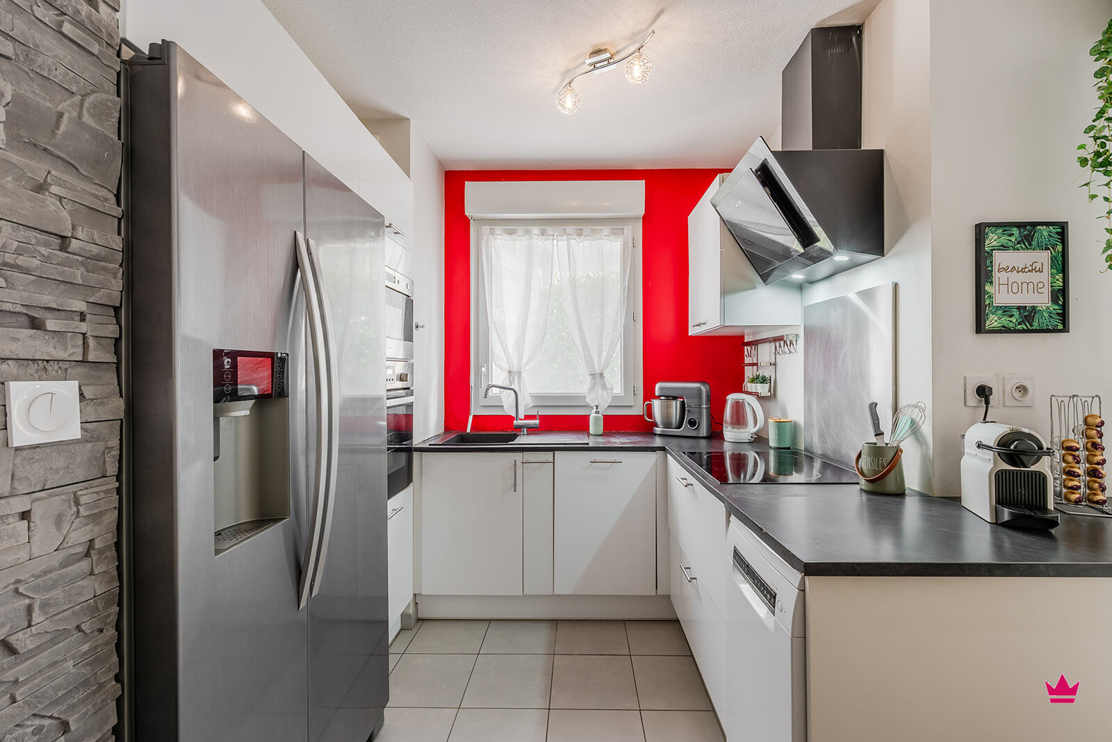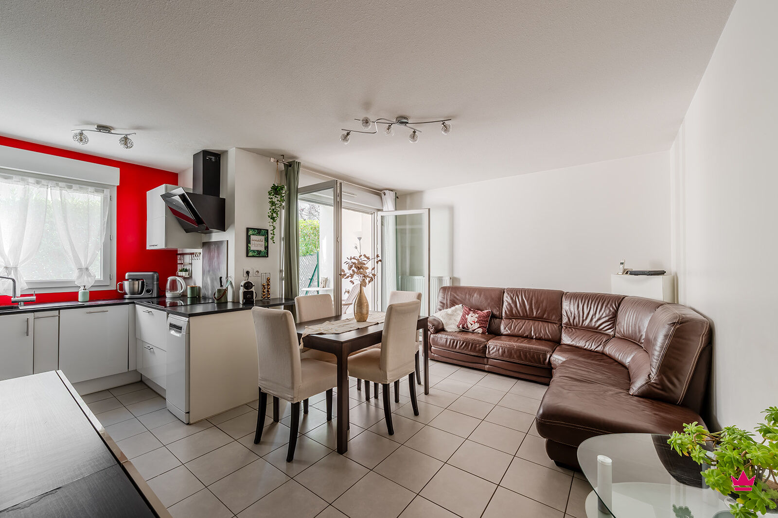 Il se compose d'une cuisine ouverte sur le séjour, avec accès directement à la terrasse. Parfait pour manger dehors !