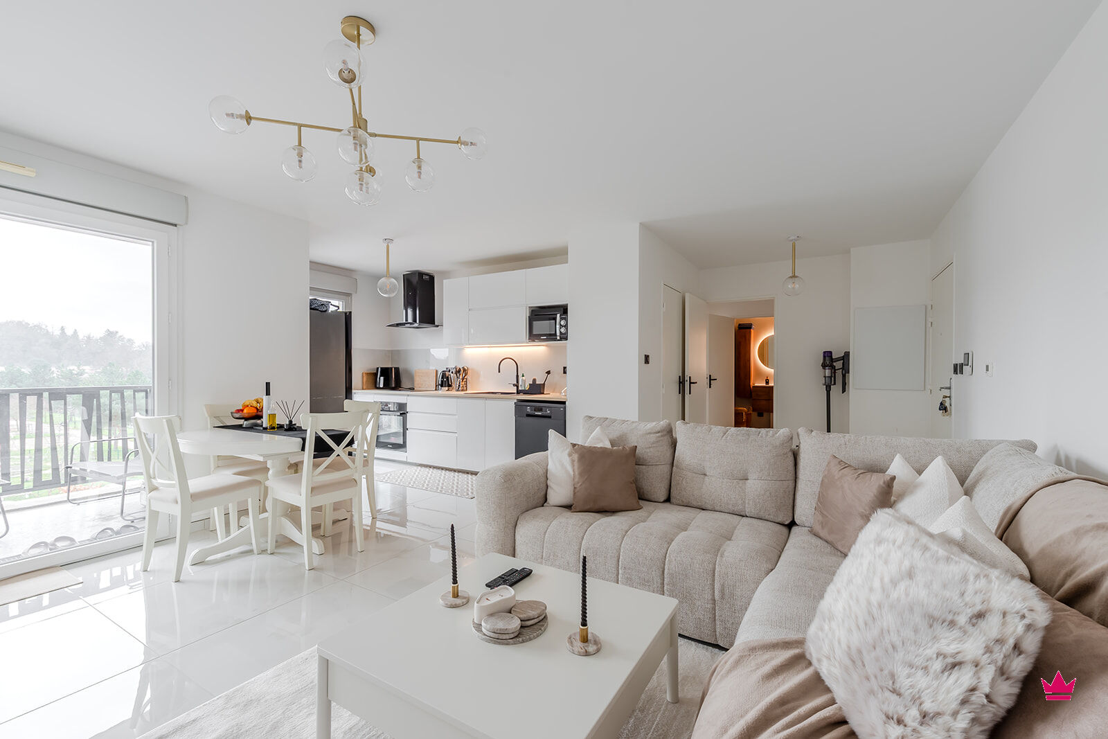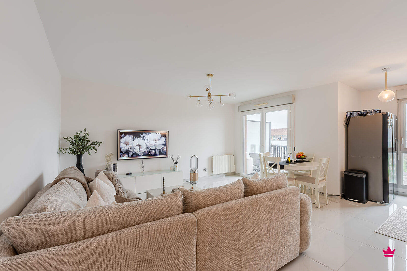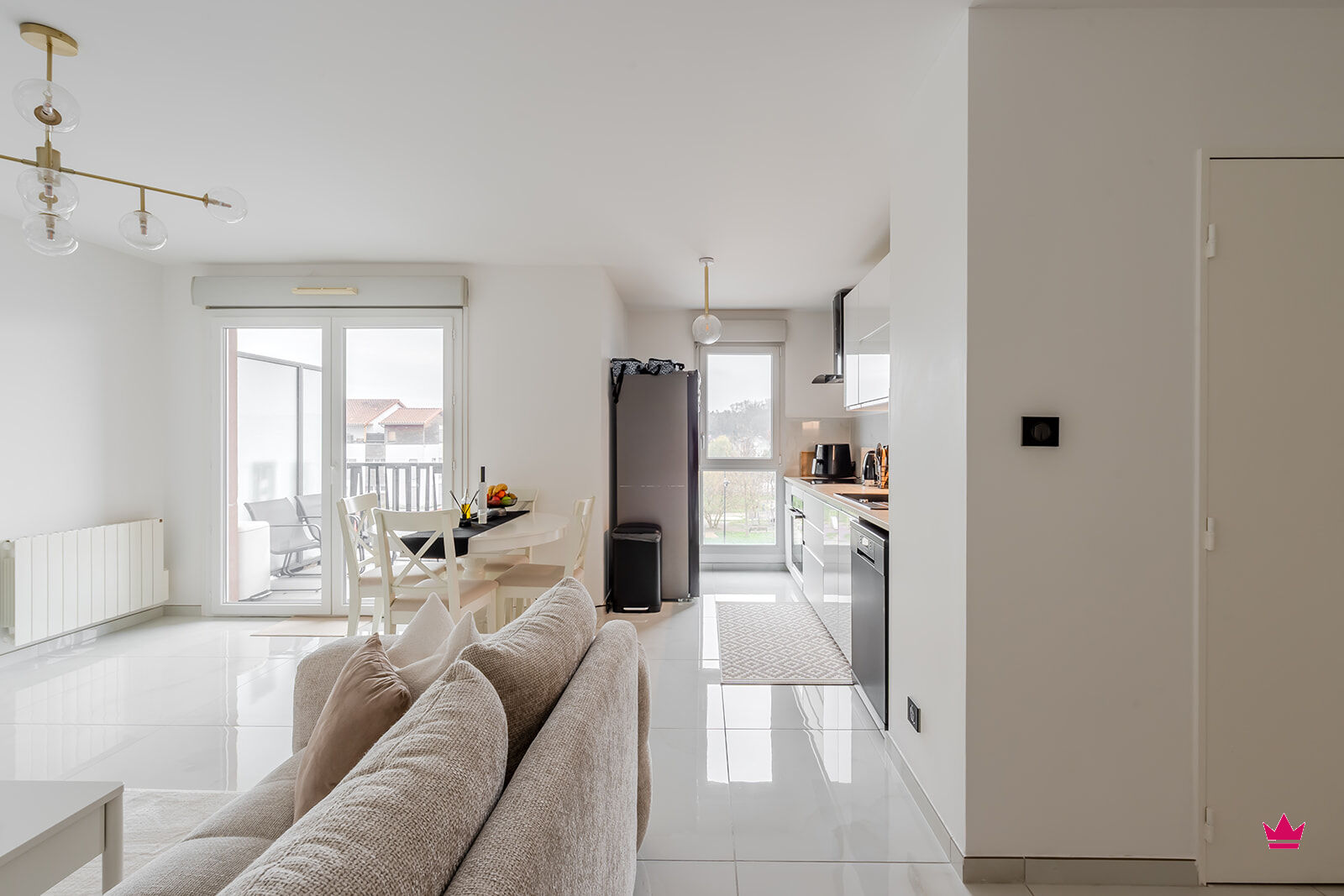 En vente : laissez-vous charmer par ce magnifique appartement de 3 pièces au dernier étage d'une copropriété récente à MEYZIEU (69330). En parfait état, vous n'aurez qu'à poser vos valises et profitez de ce bien d'exeption entièrement refait à neuf avec des matériaux haut de gamme. Dès l'entrée vous serez séduit par ce grand séjour cuisine de plus de 30 m2 ouvert sur le balcon avec vue dégagée et exposé sud pour un maximum de luminosité .