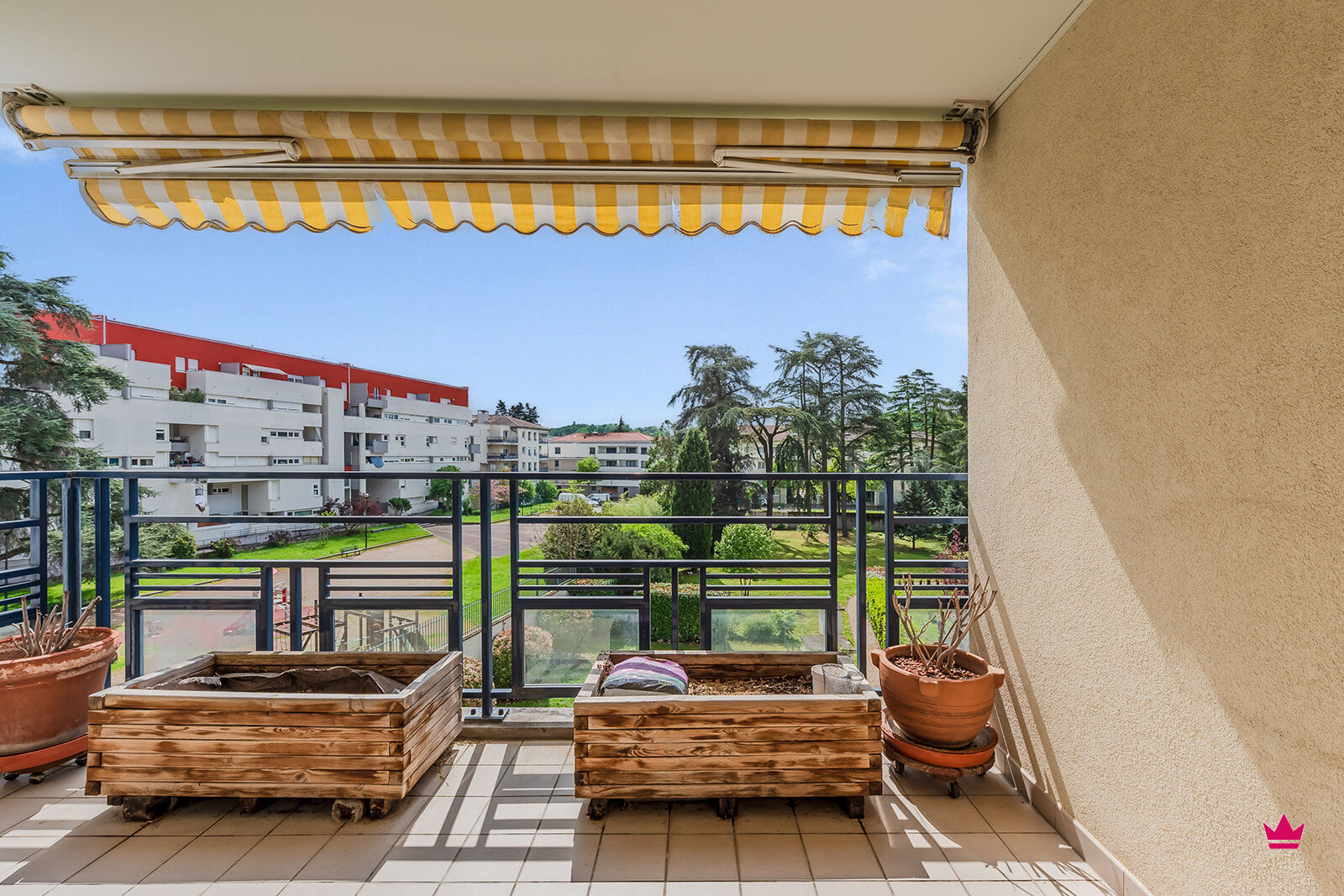 Vous profiterez également d'une belle terrasse donnant sur le parc de la copropriété au calme.