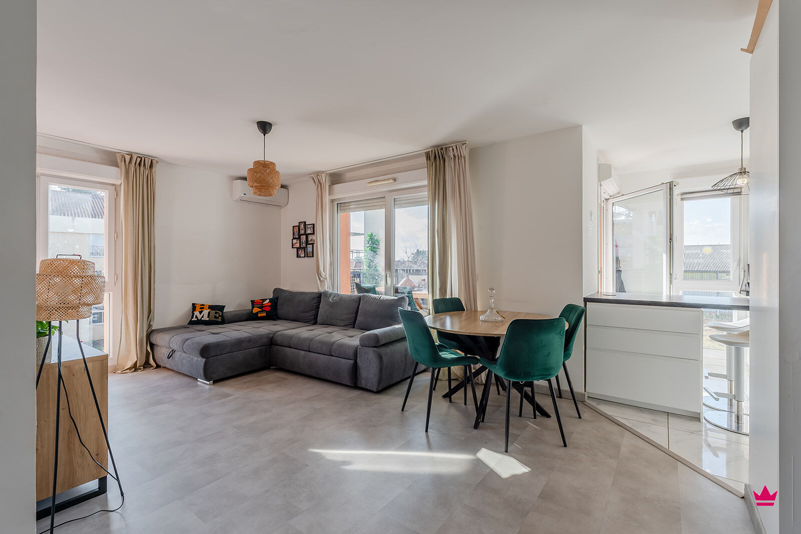 Idéal pour une petite famille ou un couple, vous apprécierez sa cuisine aménagée ouverte sur une spacieuse pièce de vie de 28m2 donnant sur une terrasse de 9m2, les deux chambres confortables, la salle de bain, et les toilettes indépendants.