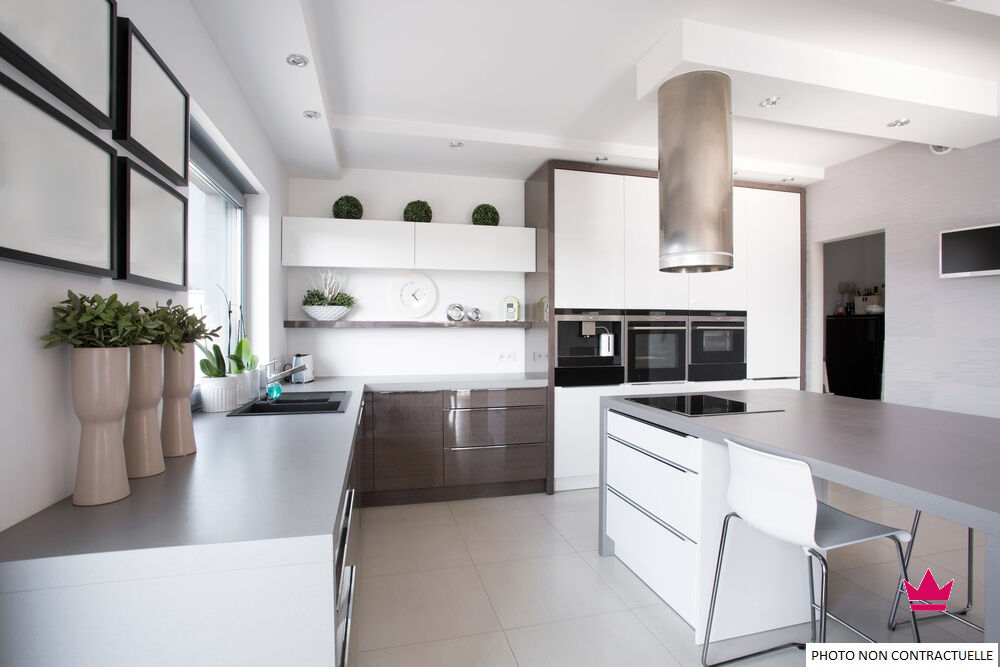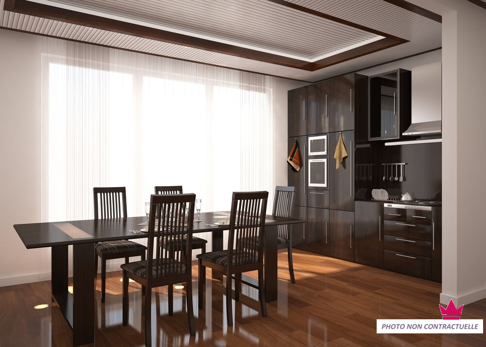 Cuisine ouverte, parquet stratifié, carrelage élégant,