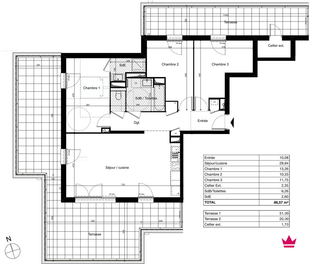- Prestations dernier cri : fibre optique jusqu'à l'appartement, vidéophone, badges Vigik, prises réseau dans toutes les pièces...