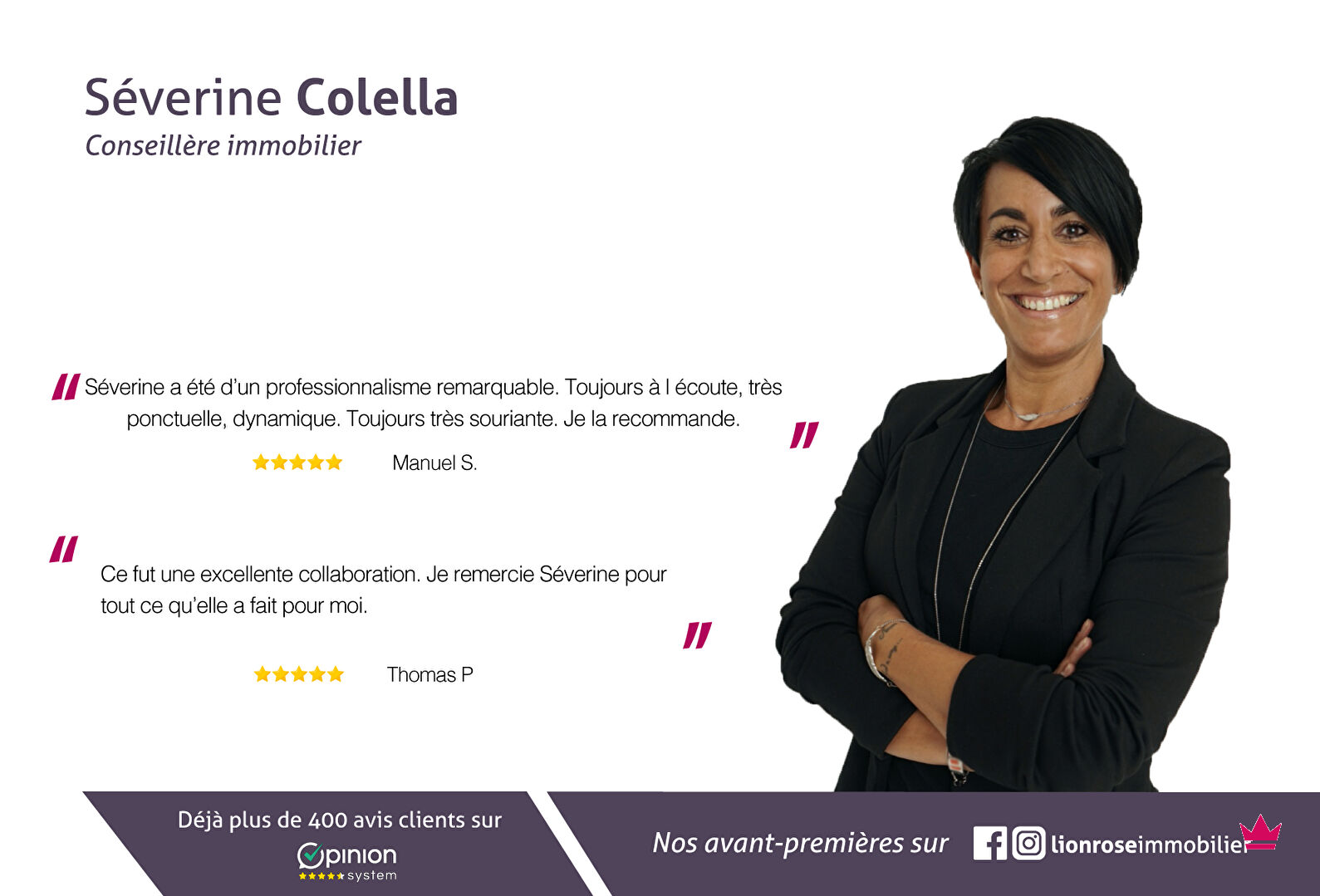 Pour plus d'informations ou une visite, contactez Séverine de votre agence Lionrose.
