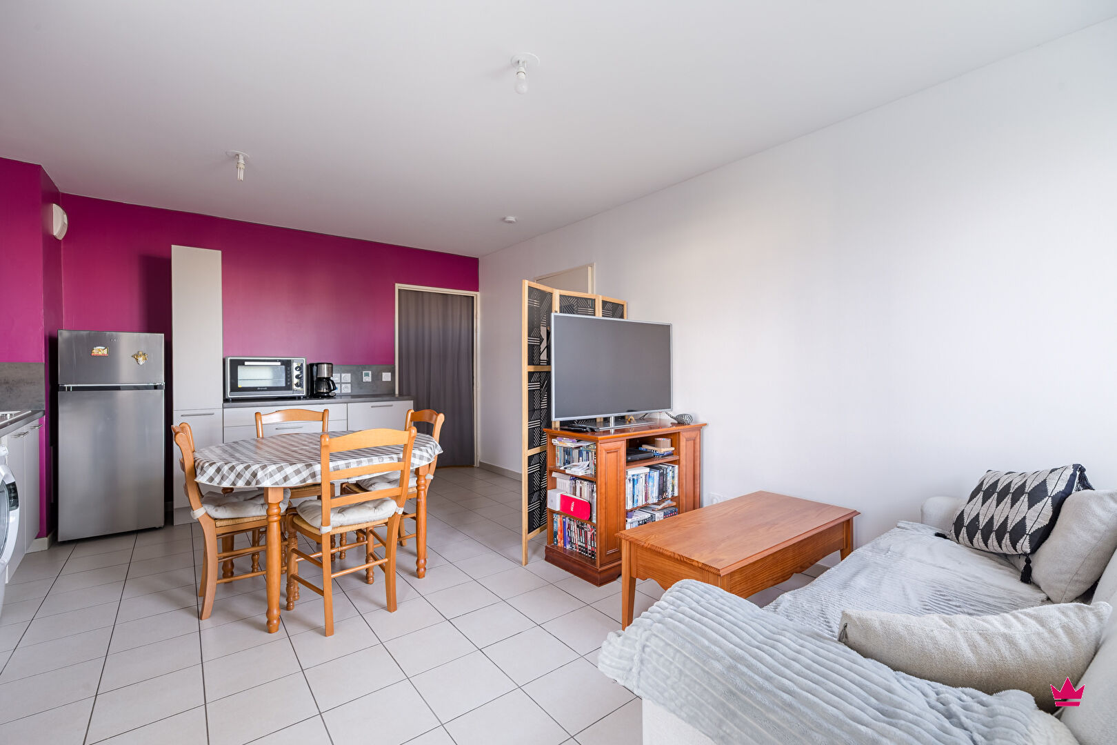 L'appartement se compose d'une pièce de vie lumineuse avec cuisine ouverte équipée donnant accès à un balcon agréable, parfait pour profiter de l'extérieur, une spacieuse chambre avec placard intégré, une salle d'eau fonctionnelle, ainsi qu'une entrée avec rangements.