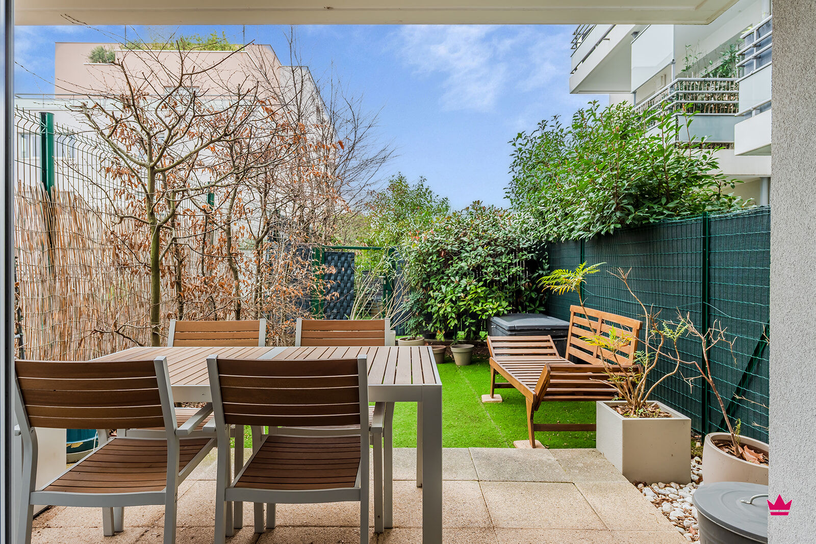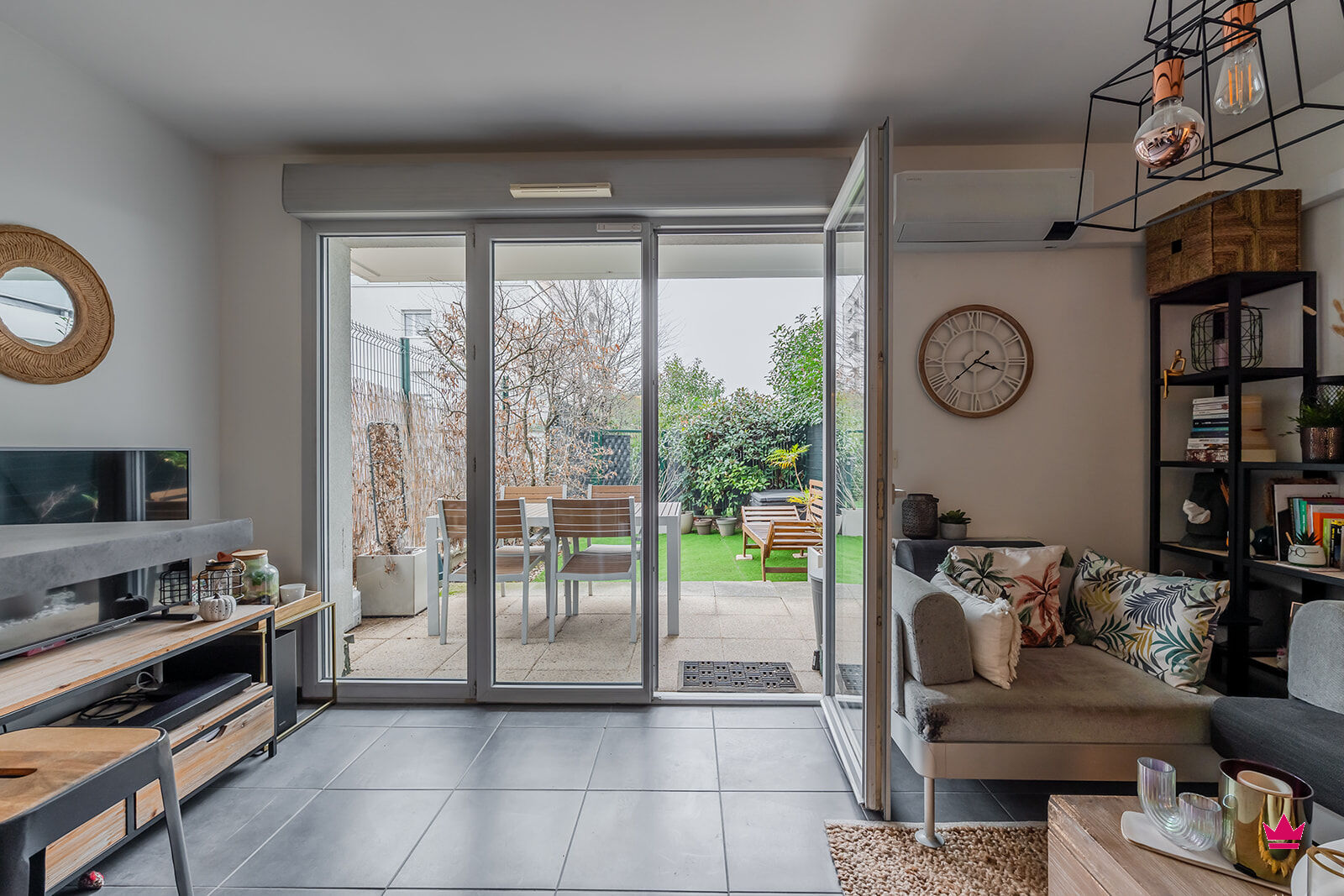Dès l'entrée, vous serez séduit par un séjour avec cuisine ouverte aménagée, un espace convivial qui s'ouvre directement sur un agréable jardin privatif d'environ 20 m². Un véritable prolongement de l'appartement, idéal pour profiter des beaux jours, recevoir ou simplement se détendre.