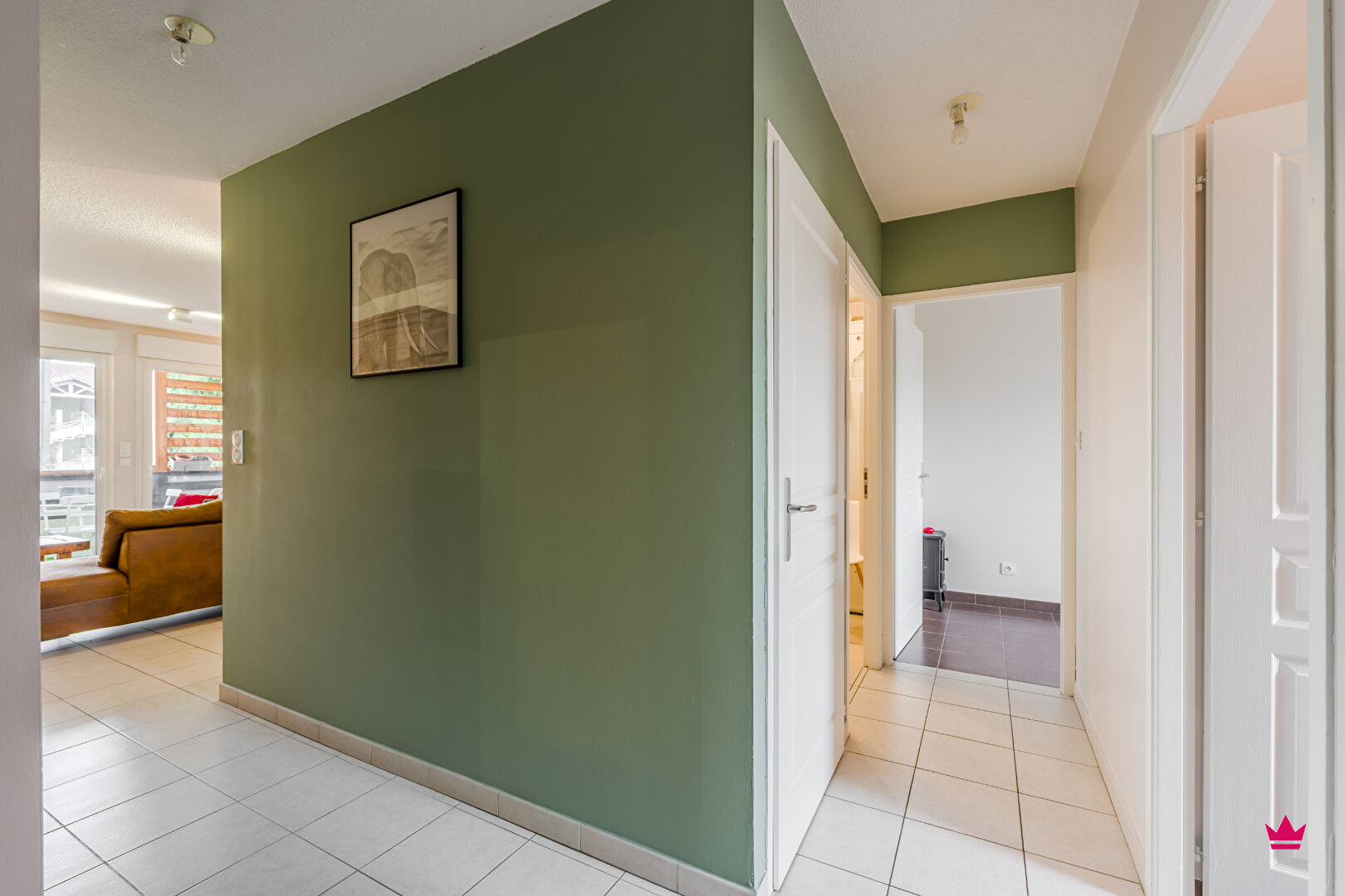 L'appartement dispose de deux chambres, d'une salle d'eau moderne, ainsi que de WC séparés. Le chauffage au sol par pompe à chaleur garantit confort et économies d'énergie. Une cave