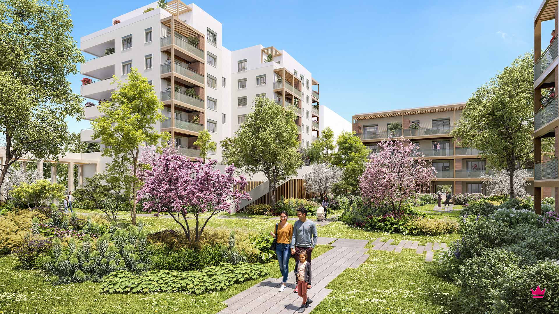 Beau T2 de plus de 42m² dans une résidence avec de beaux espaces verts.