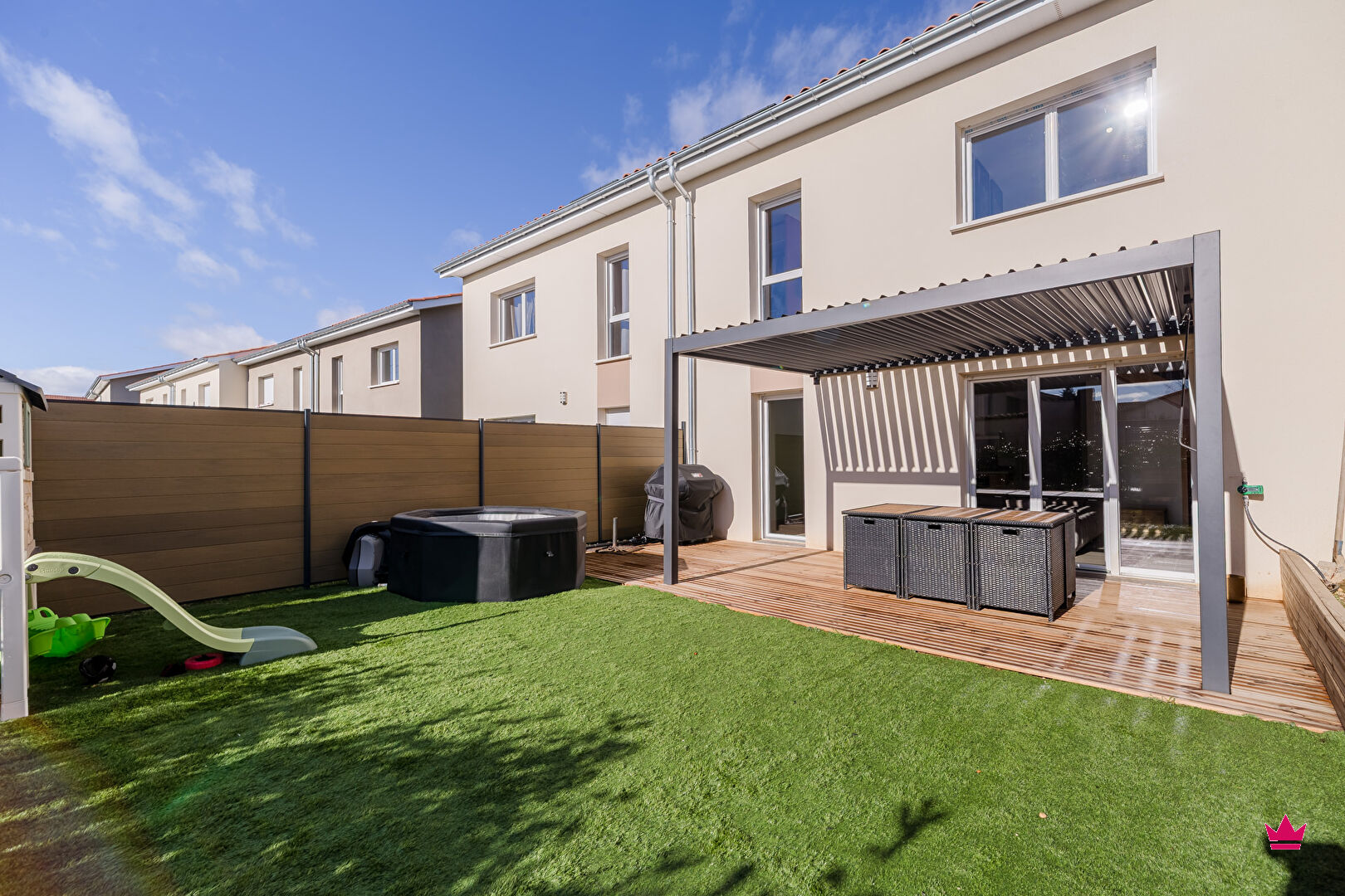 NOUVEAU sur les hauteurs de Chasse-sur-Rhône, Lionrose vous propose en exclusivité cette charmante maison individuelle très lumineuse de 100 m² construite en 2024 sans aucun travaux à prévoir. Vous disposerez au rez-de-chaussée d'une belle pièce de vie de 38 m² avec cuisine aménagée, équipée, ouverte sur le salon, le tout ouvrant sur une agréable terrasse avec pergola et ravissant jardin clôturé, d'une buanderie et toilettes séparés. A l'étage, vous profiterez de 3 belles chambres dont 1 chambre parentale avec son dressing et sa salle d'eau, et d'une salle de bains et toilettes séparés. Le tout édifié sur un joli terrain de 183 m², complété par un garage avec de nombreux rangements et une place de parking.