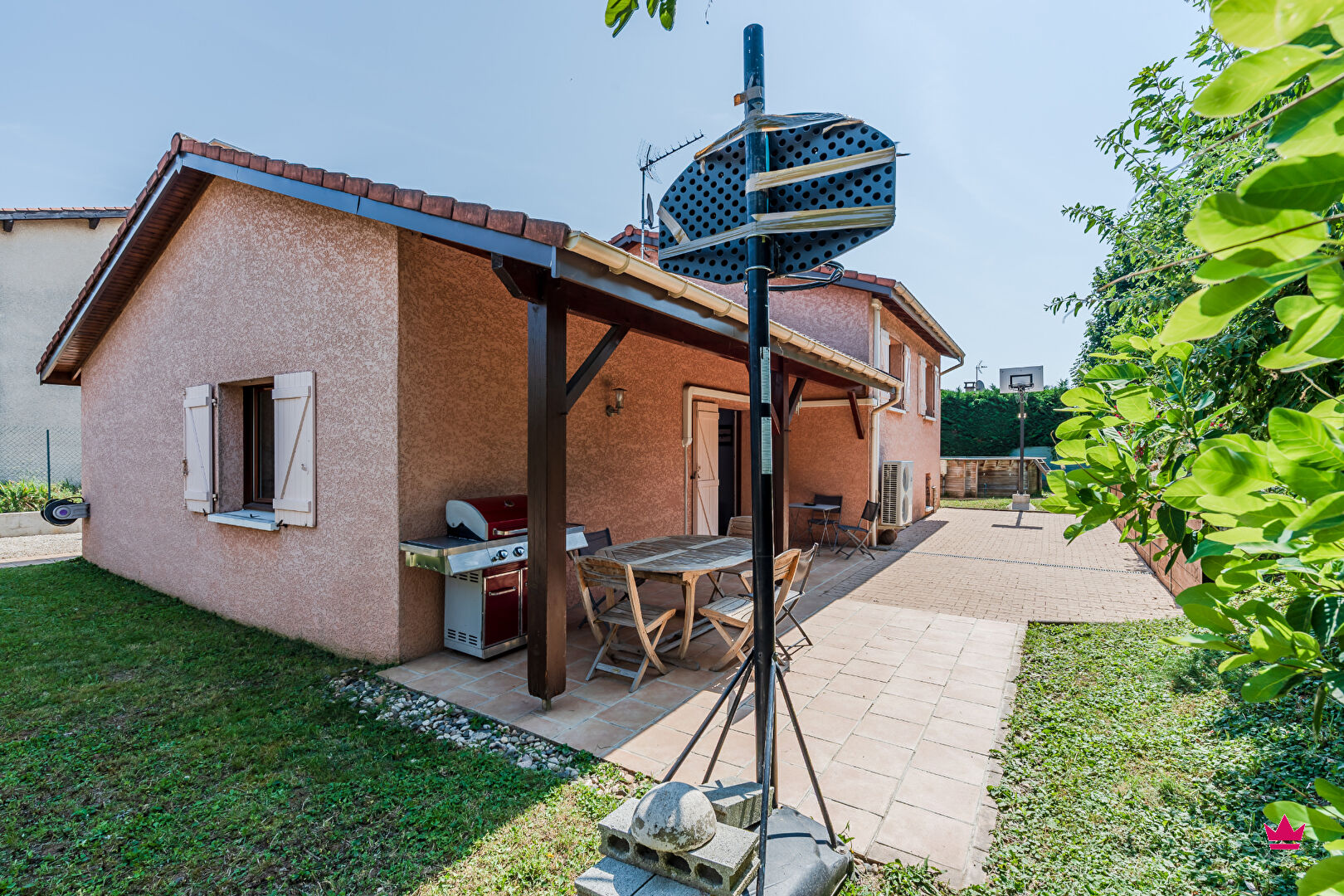 A l'extérieur, le jardin comporte deux terrasses pour profiter pleinement du soleil ou de l'ombre, une piscine hors sol et la possibilité de stationner un véhicule devant le garage dans la propriété. Proximité avec les transports (arrêts de bus), commerces (centre-ville et Intermarché) et écoles (Tarentelles et Louis Pergaud).