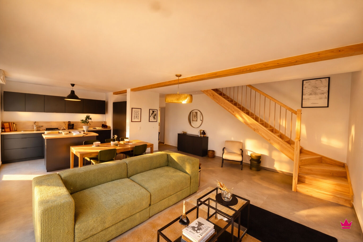 Cette maison offre une belle pièce de vie de 37 m², lumineuse et conviviale, ouverte sur une terrasse de 26 m² et un jardin privatif de 156 m², idéal pour profiter pleinement des extérieurs en toute tranquillité.