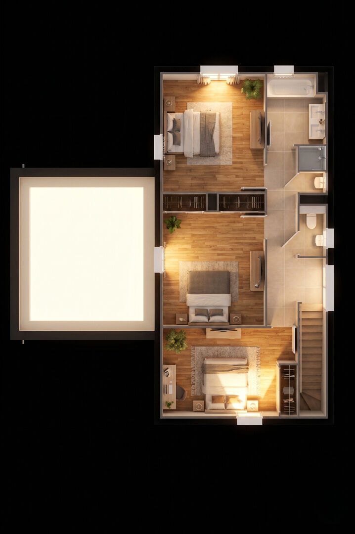 L'espace nuit se compose de quatre chambres spacieuses, comprises entre 14 et 16 m², ainsi que de deux salles de bains et deux WC, assurant un confort optimal au quotidien.