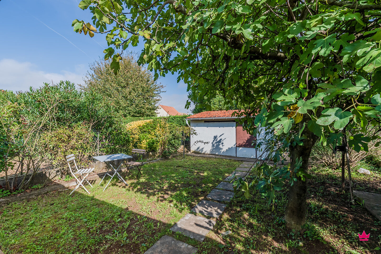 Le jardin, orienté Ouest, est clos avec un portillon d'accès. Il possède également un cabanon de rangement.