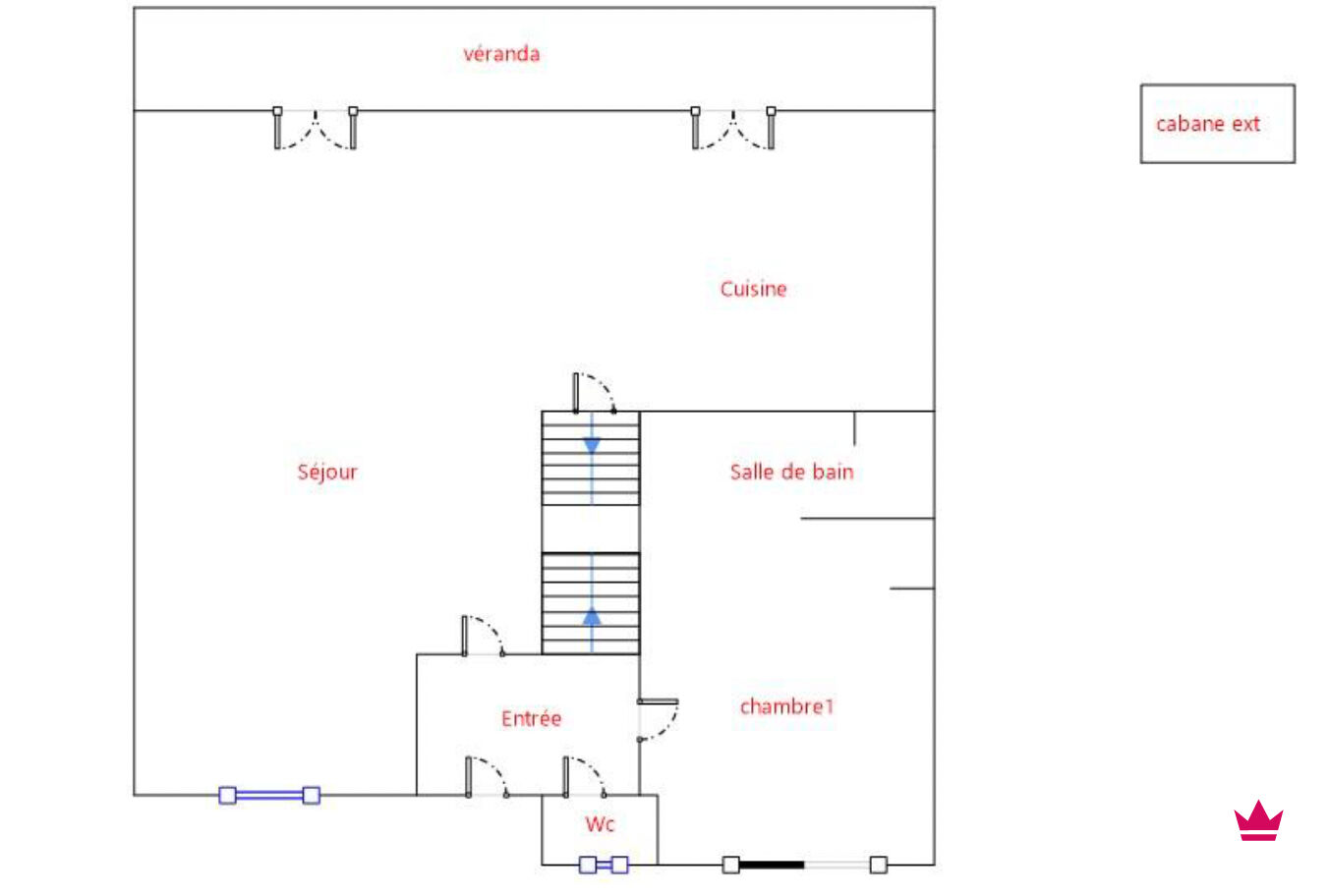 Elle est composée au rez-de-chaussée, d'un hall d'entrée, une cuisine ouverte aménagée équipée donnant sur un salon/salle à manger traversant Est/Ouest donnant accès à une véranda de plus de 25m2. Un WC indépendant et une chambre de plain-pied avec sa salle d'eau attenante complète ce niveau avec une superficie de 15m2.