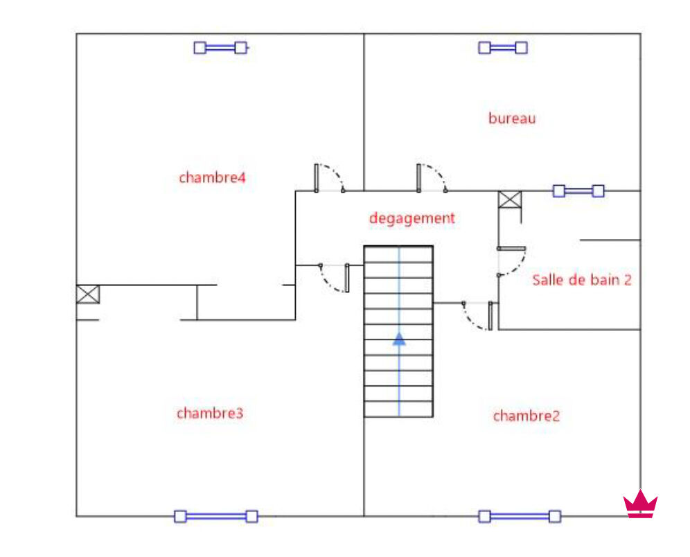 A l'étage, trois chambres, un bureau pouvant servir de 4eme chambre et une salle d'eau avec toilettes.
