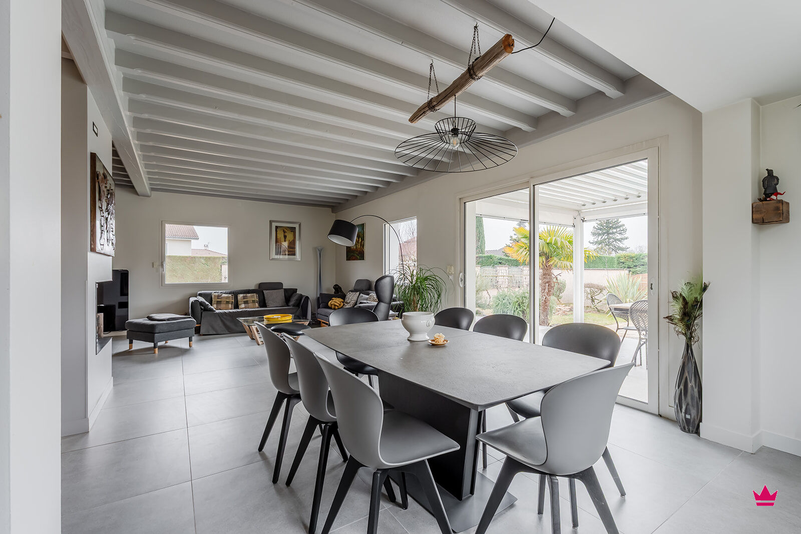 Côté extérieur, le jardin accueille une piscine enterrée ainsi qu'une grande terrasse équipée d'une pergola bioclimatique, idéale pour profiter pleinement des beaux jours.