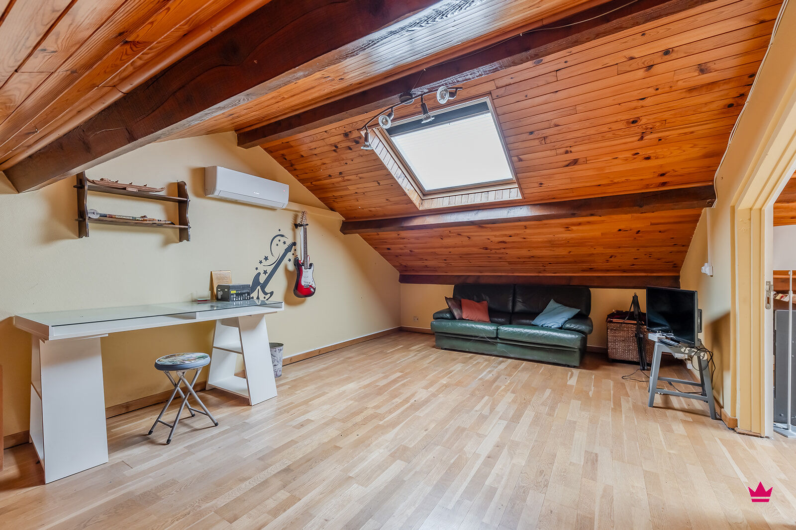 Les combles offrent deux chambres supplémentaires avec salle de bain, comprenant un WC, ainsi que deux pièces polyvalentes pouvant servir de salle de jeux ou de bureaux.