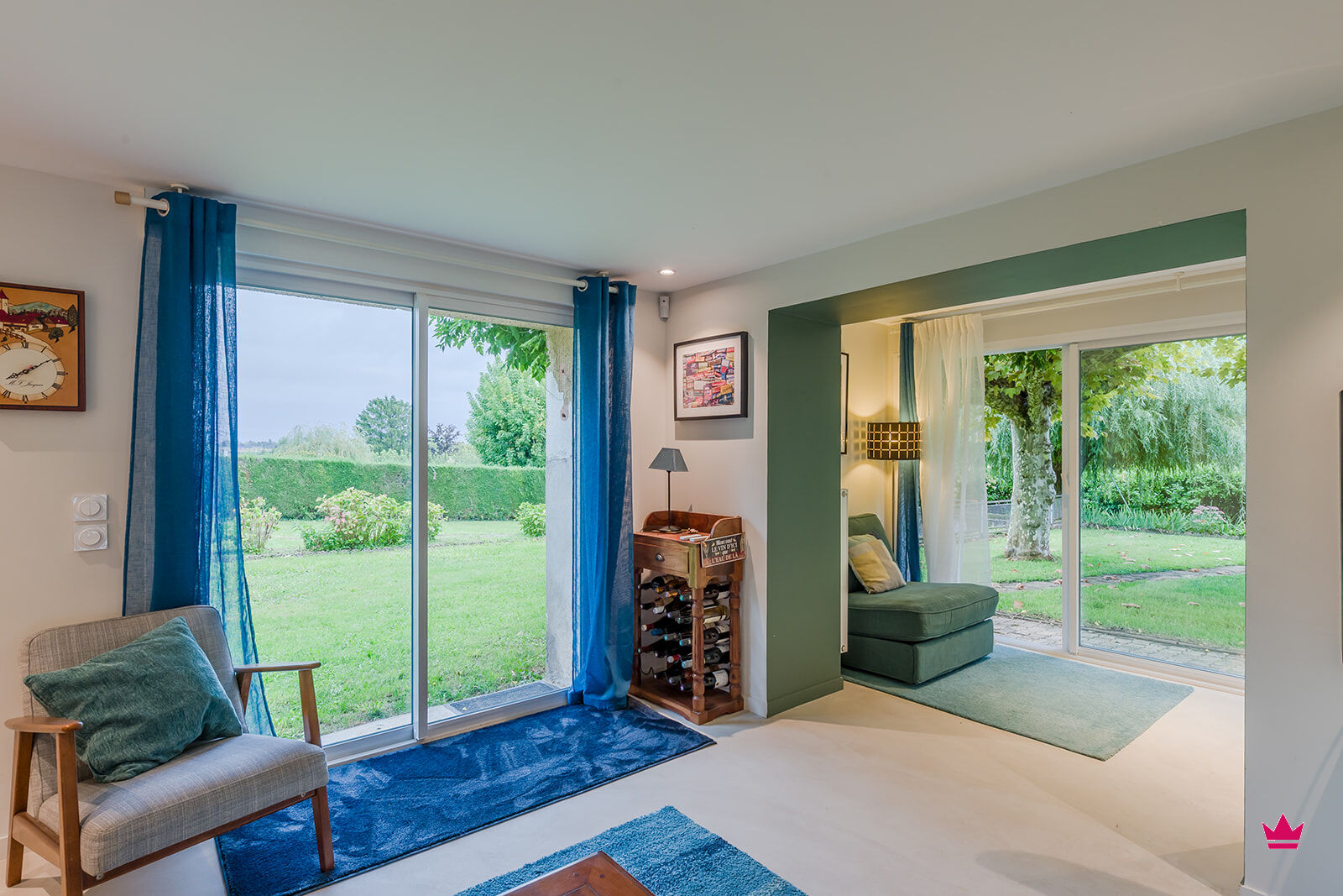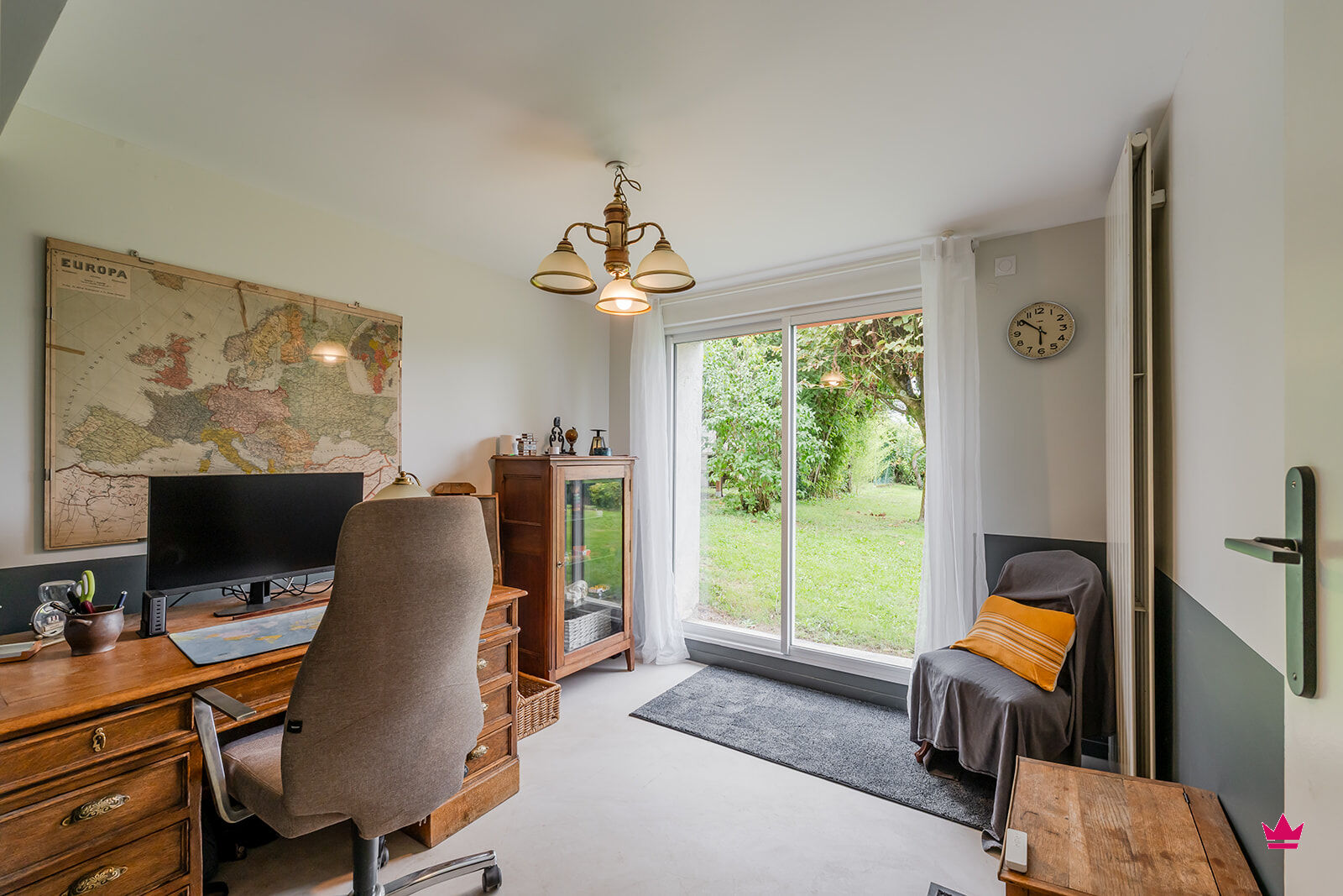 La maison, d'une superficie habitable de 162 m², se compose au rez-de-chaussée d'une pièce de vie lumineuse ouverte sur le jardin sans vis à vis, d'une cuisine équipée indépendante, d'une chambre avec une salle d'eau et d'un bureau idéal pour le télétravail.