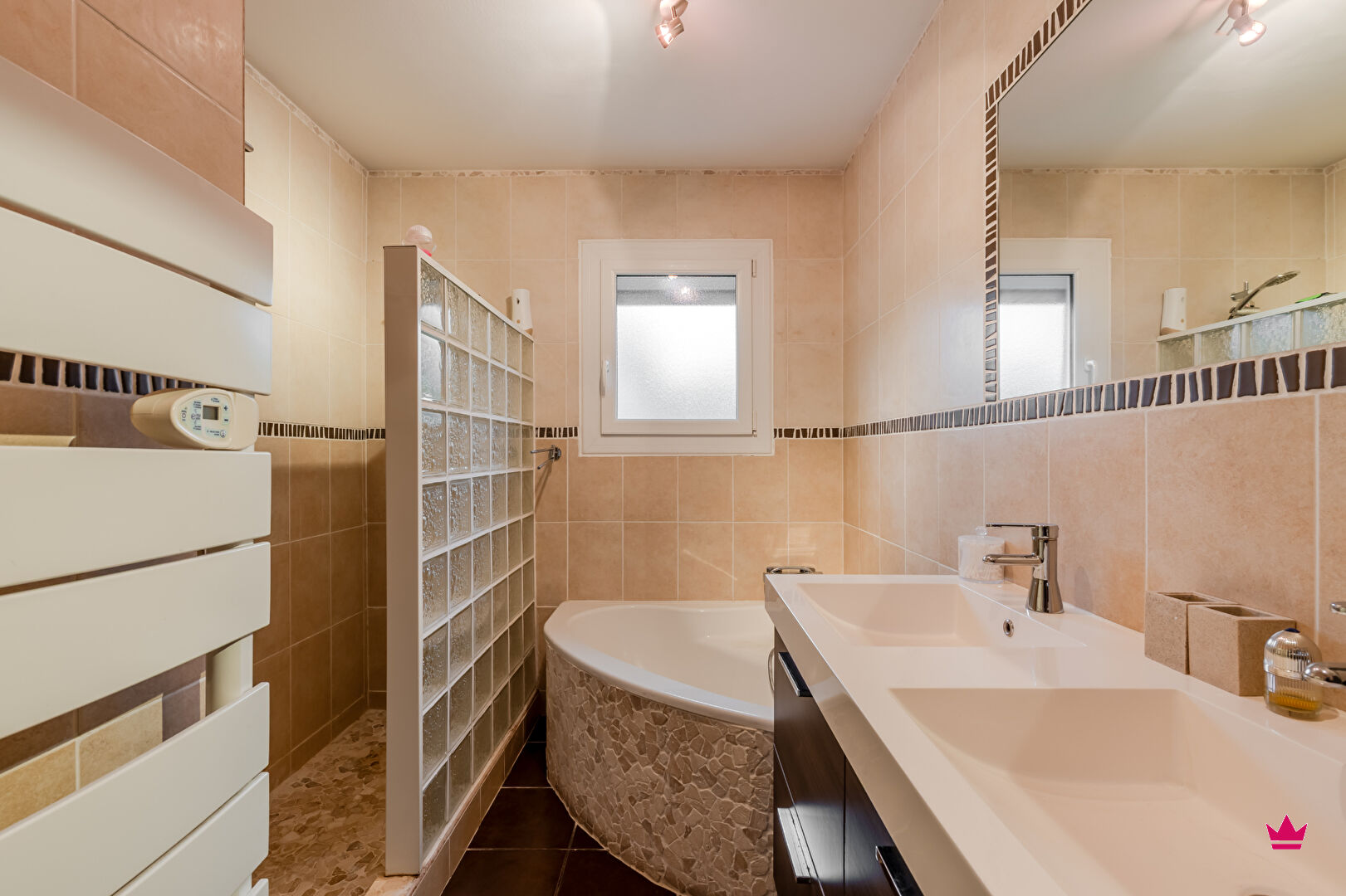 La cuisine est fonctionnelle, les trois chambres sont bien proportionnées, et la maison dispose à la fois d'une salle de bain, d'une salle d'eau et d'un WC indépendant. Pratique pour la vie de famille.