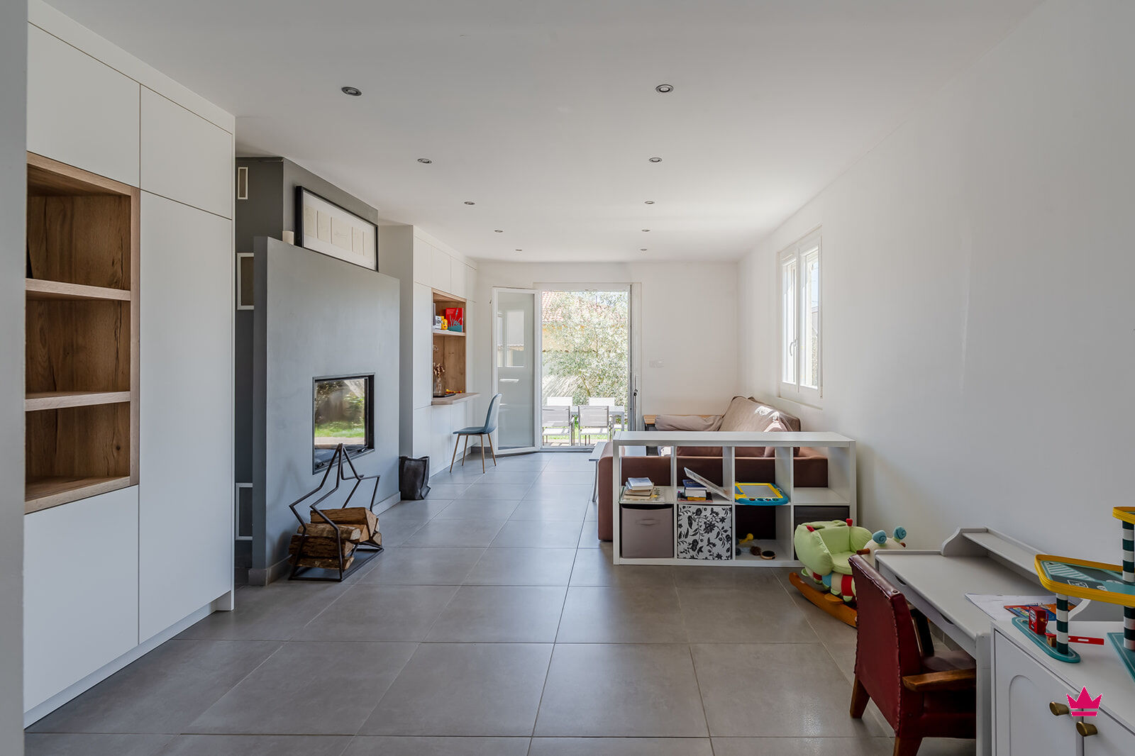 Dès l'entrée, laissez-vous séduire par une cuisine moderne refaite en 2022, ouverte sur un grand espace de vie lumineux avec salon, salle à manger et cheminée chaleureuse. Le tout avec un accès direct à la terrasse et au jardin