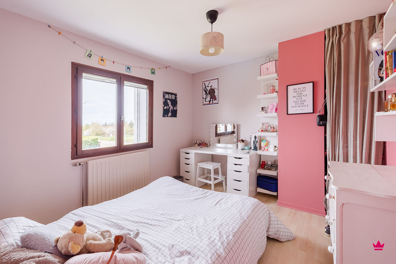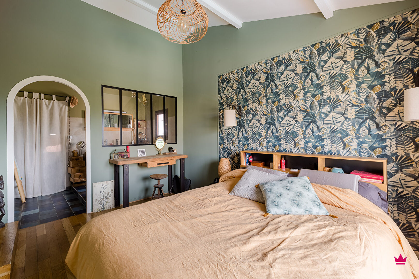 A l'étage, l'espace nuit se compose de quatre chambres et d'un bureau, dont une suite parentale avec dressing et salle de bain attenante. Vous y trouverez également une salle d'eau indépendante et un second WC séparé.