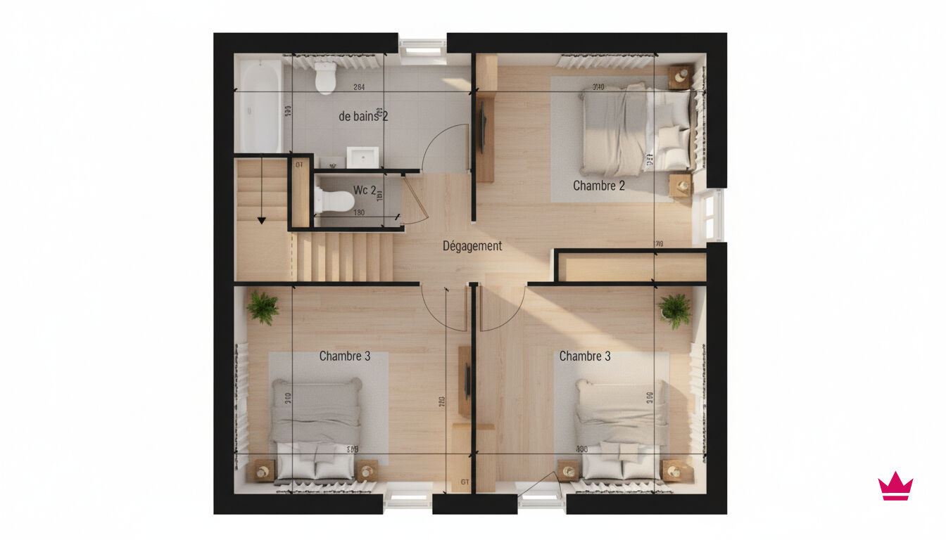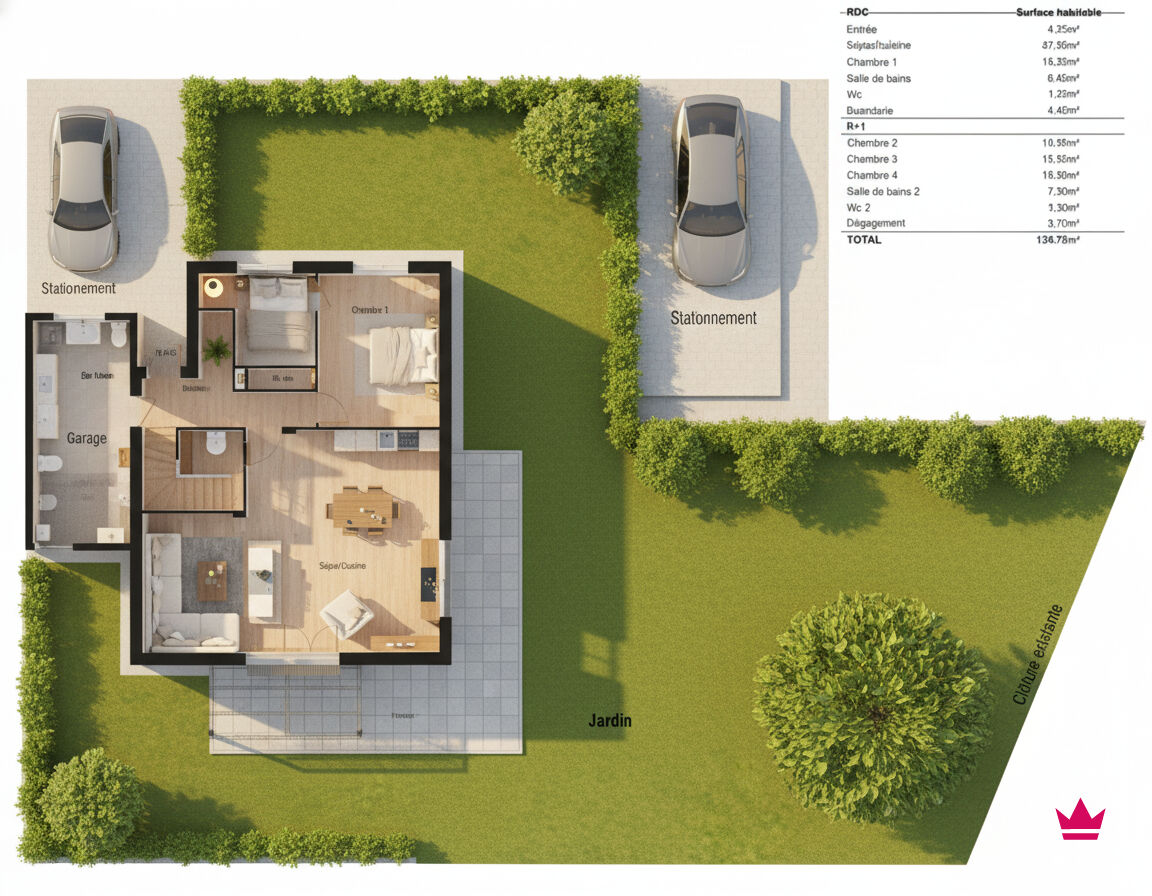 Maison de 134.70m² sur un terrain de 580m² environ.