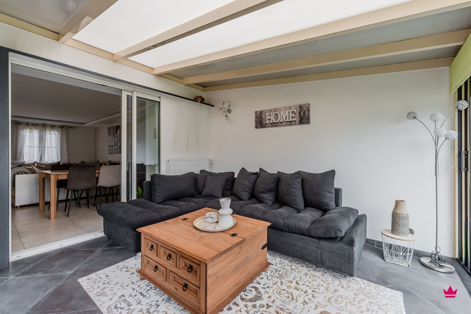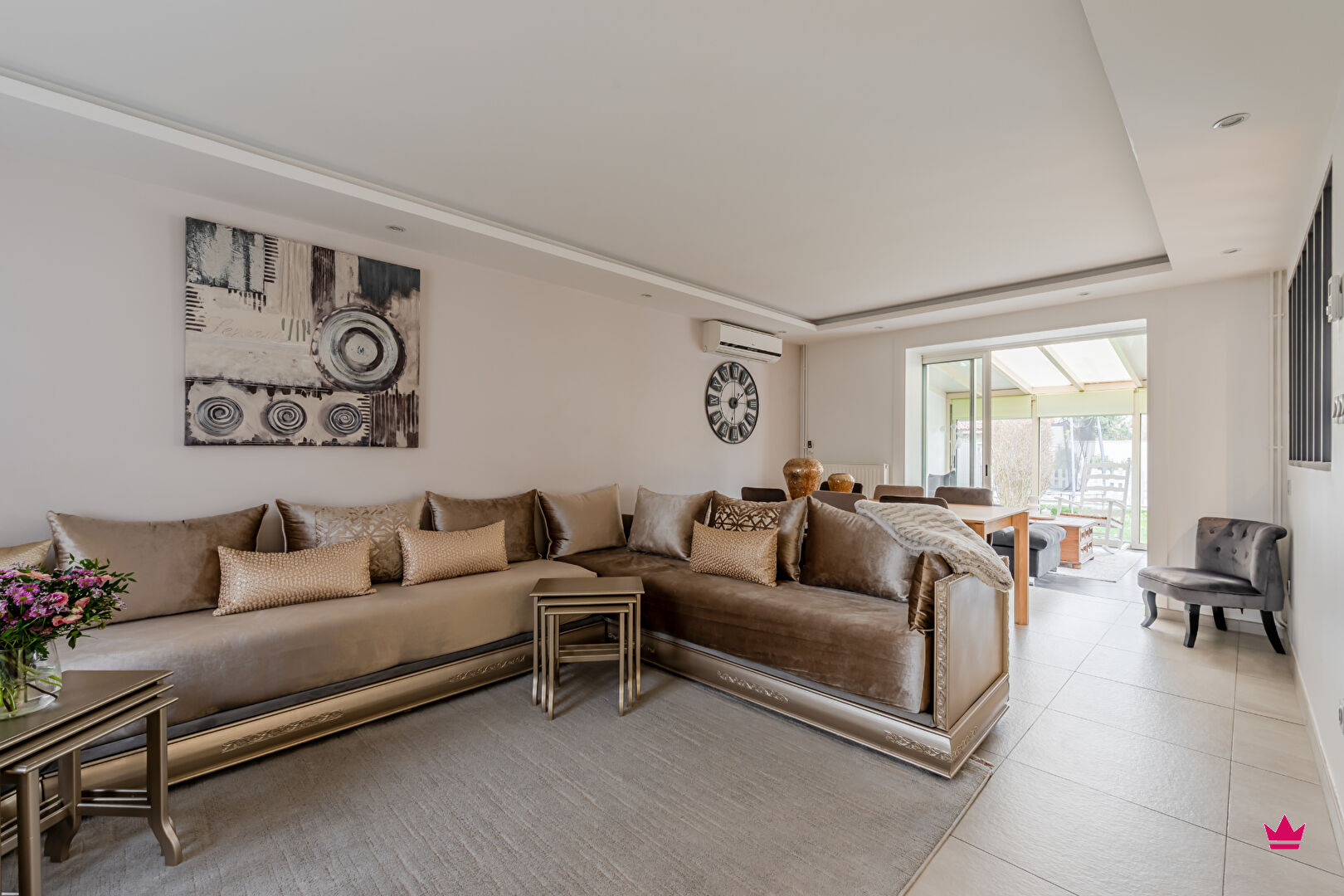 Au rez-de-chaussée, vous trouverez une entrée avec toilettes, une spacieuse pièce de vie de plus de 48 m², comprenant une véranda, ainsi qu'une cuisine entièrement équipée, semi-ouverte par une verrière.