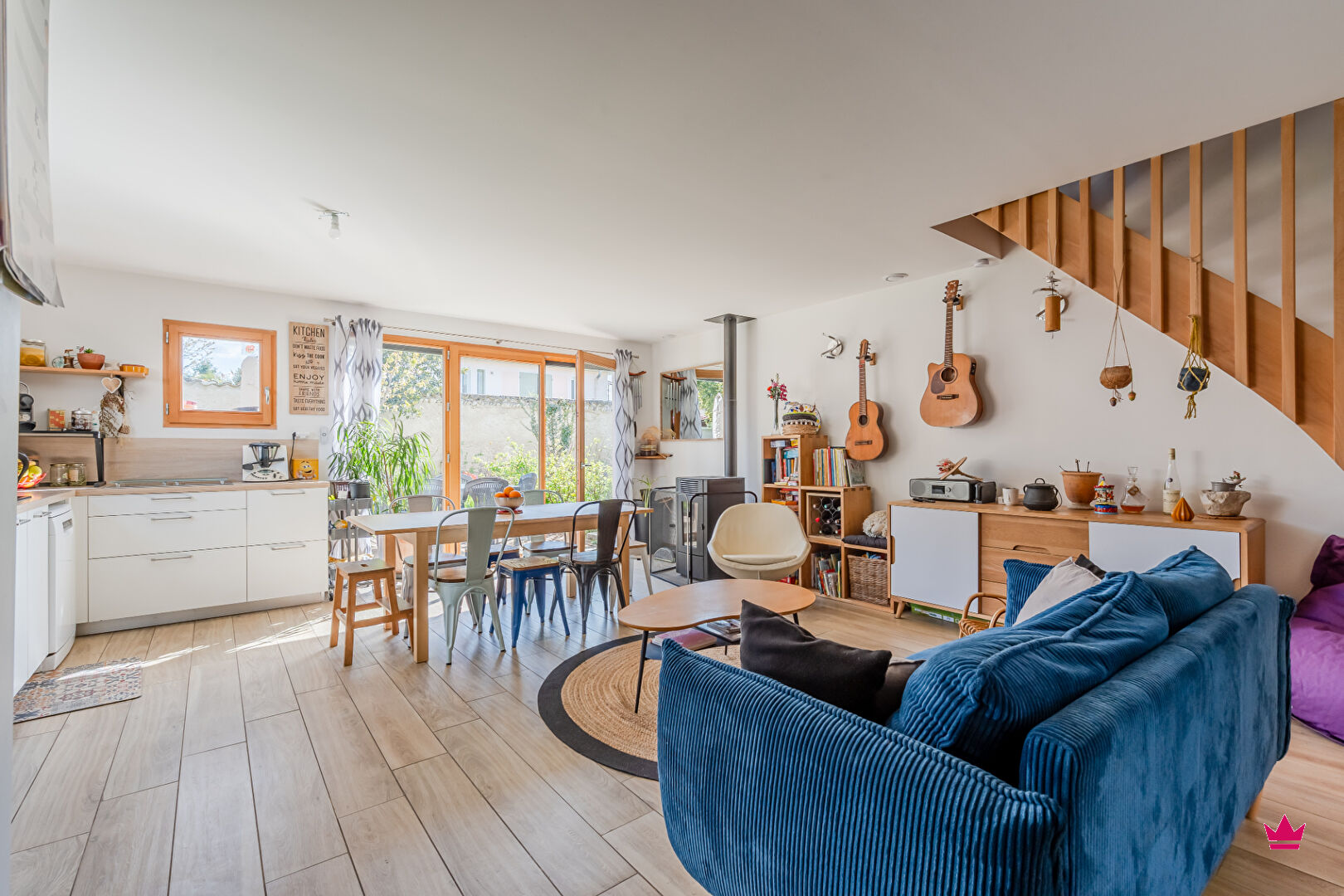 Dès l'entrée dans la propriété, vous serez charmés par la cour et le jardin partagé, les volumes de la maison, sa luminosité et le confort qu'apportent les matériaux naturels. La pièce de vie spacieuse (38m2) donne sur la terrasse au Sud. La suite parentale au rez-de-chaussée donne sur la terrasse au Nord. Les 3 chambres à l'étage vous séduiront : une possède un dressing et une autre bénéficie d'une magnifique mezzanine en verre et métal qui fera rêver les enfants !