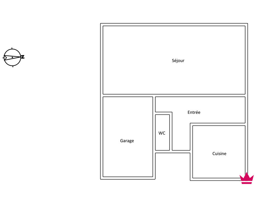RDC : entrée, salon séjour, cuisine, wc, garage