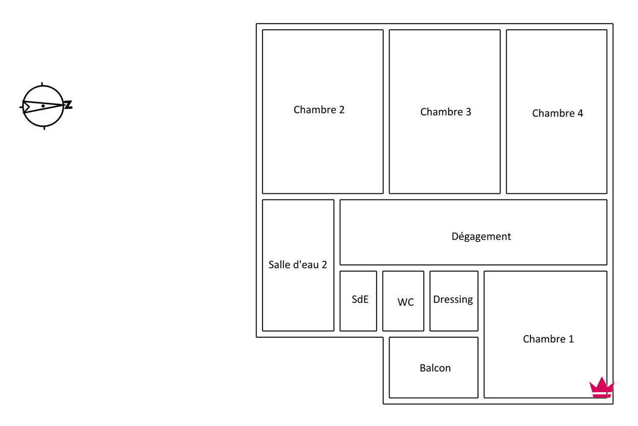 R+3 : 3 chambres, dressing, salle d'eau, wc