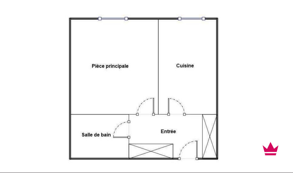 Le logement est composé d'une entrée avec placard, d'une pièce de vie, d'une cuisine séparée et d'une salle de bains.