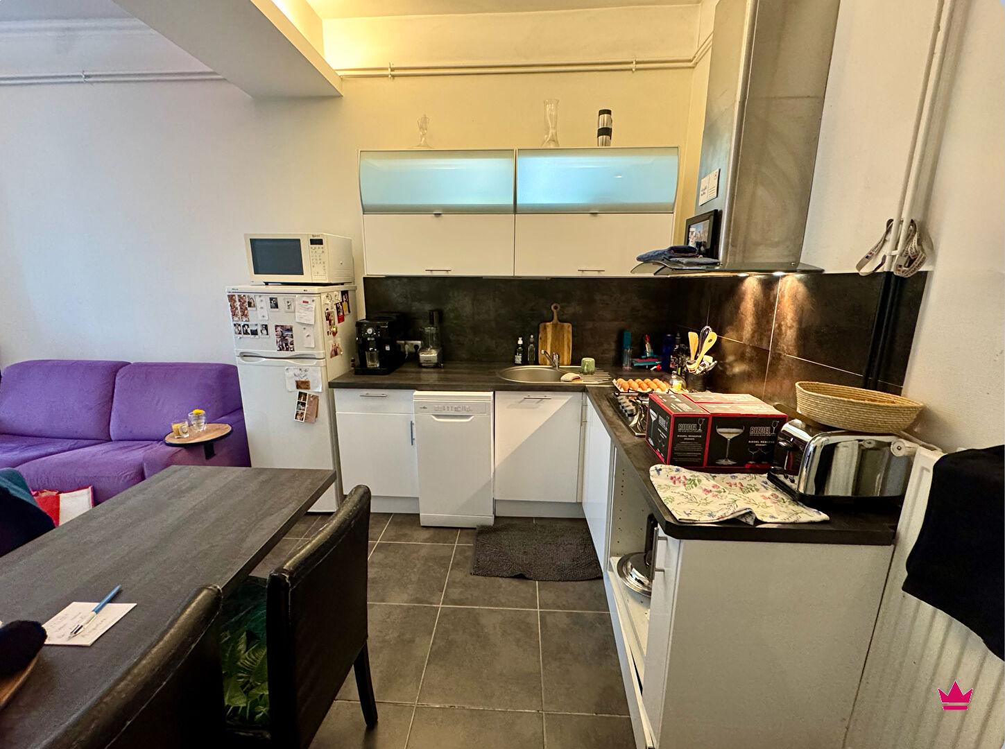 Au 4ème étage d'un immeuble avec ascenseur, le logement s'ouvre sur le séjour avec cuisine équipée. Un dégagement avec rangements mène à l'espace nuit, composé d'une chambre avec placard ainsi que d'une salle d'eau avec WC.