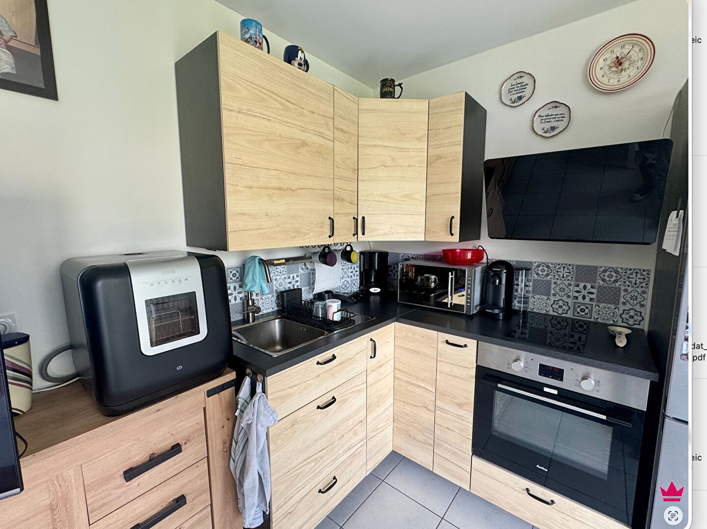 Situé à proximité immédiate des commerces et commodités, cet appartement, accessible par ascenseur, se trouve au premier étage. Il s'ouvre sur une entrée avec rangements, desservant une pièce de vie avec cuisine équipée prolongée par un balcon, ainsi qu'une salle de bains avec WC.