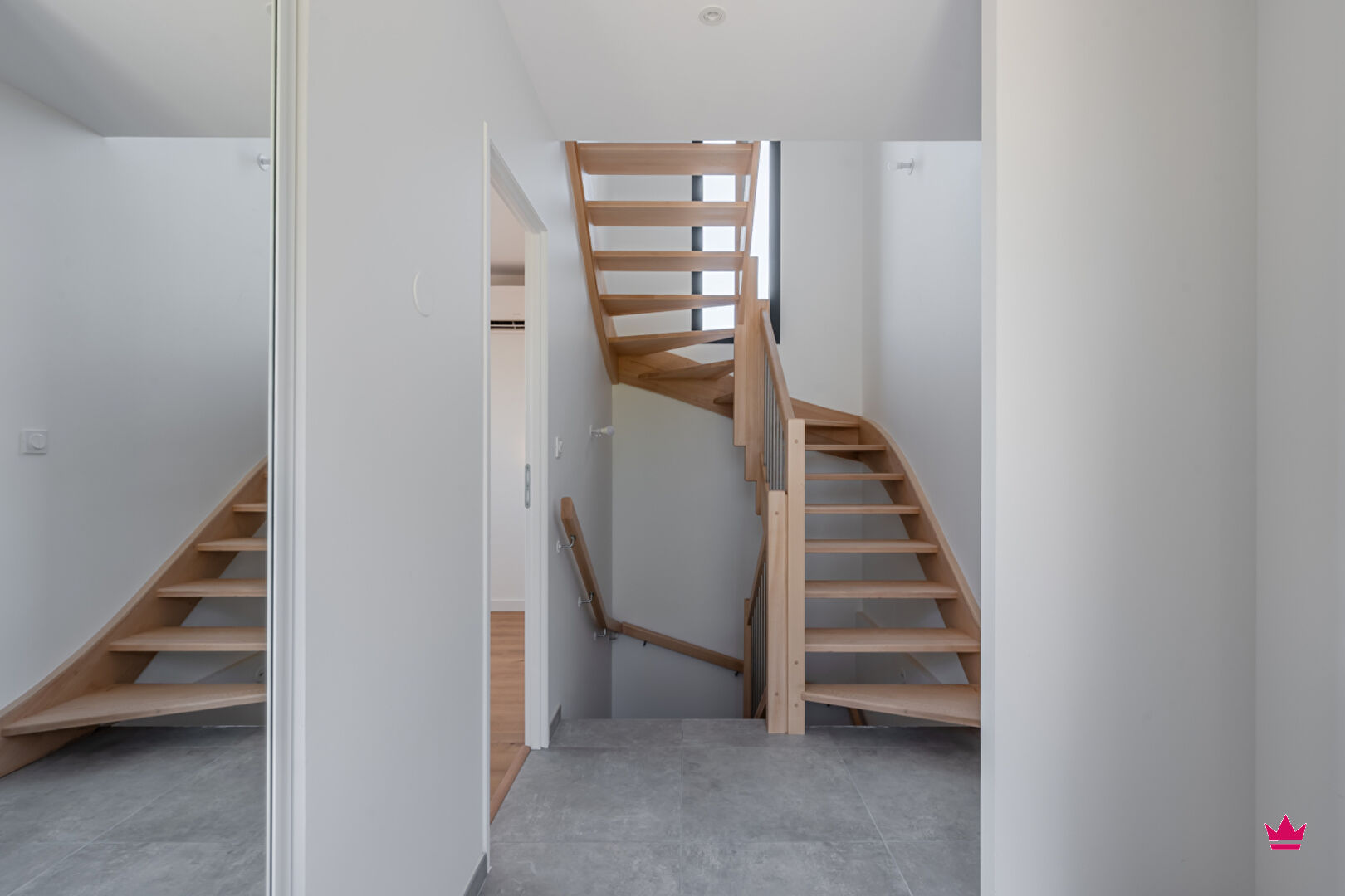 Il s'ouvre sur une entrée desservant une première chambre avec sa salle d'eau privative. En niveau inférieur, vous trouverez une seconde chambre, une salle d'eau avec WC ainsi qu'une buanderie.