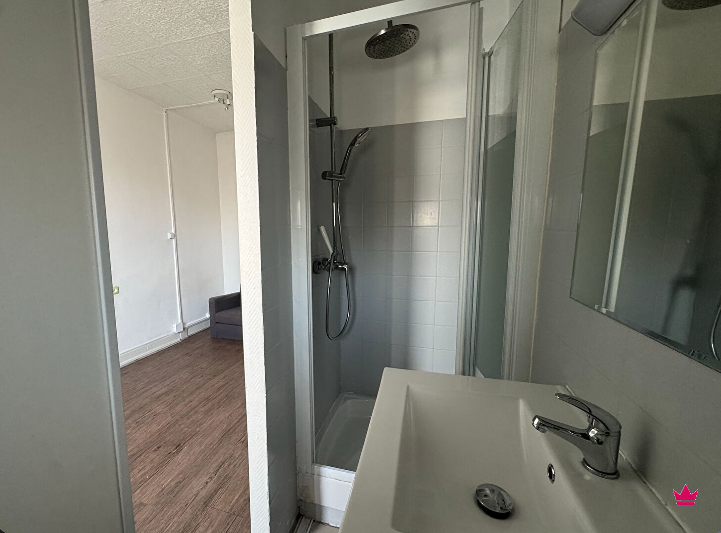 Au premier étage d'une petite résidence, l'appartement s'ouvre sur une cuisine/salle à manger équipée, comprenant des rangements, puis sur une pièce de vie avec salle de douche et toilettes.