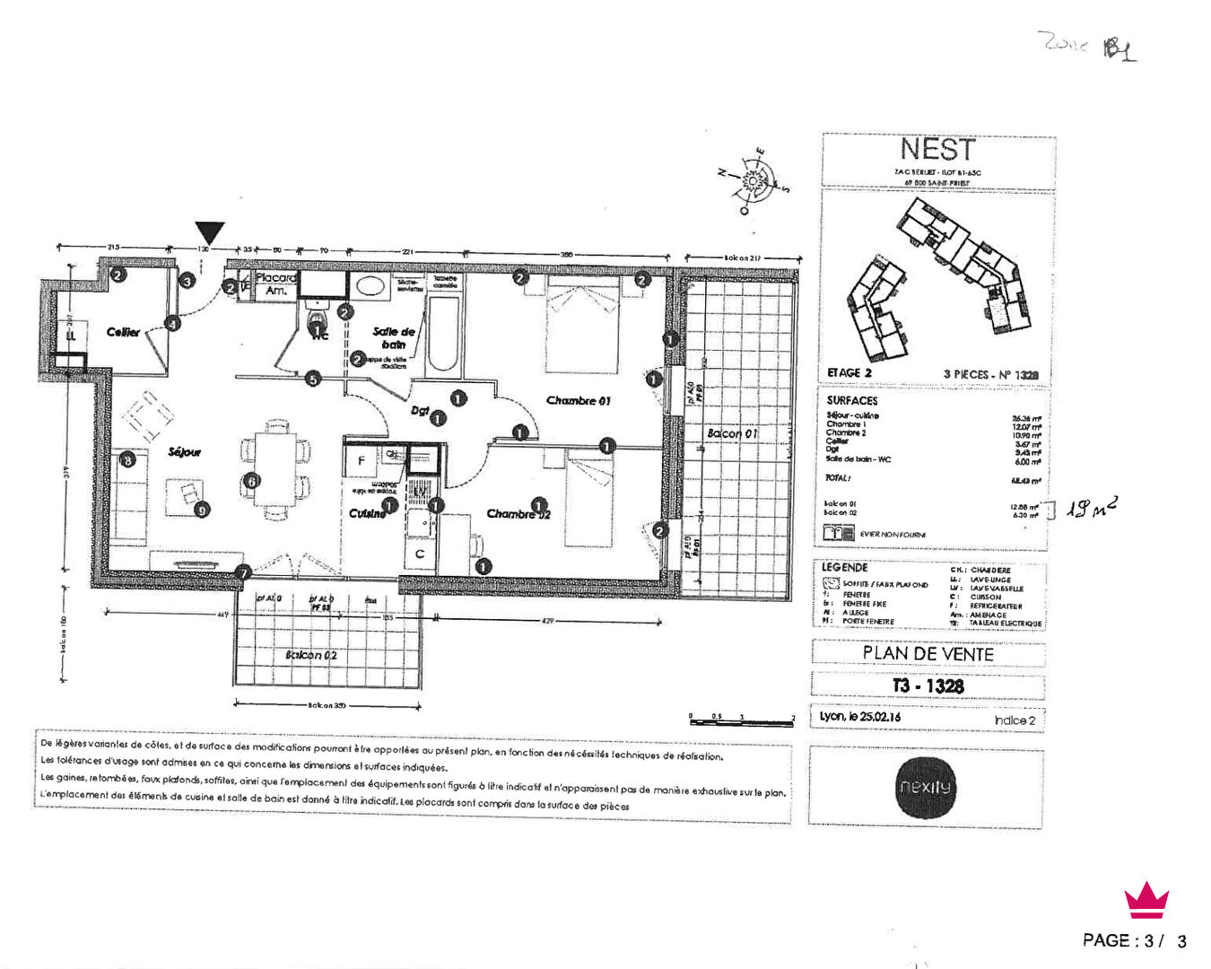 Au deuxième étage d'une résidence récente, le logement s'ouvre sur un séjour avec cuisine ouverte donnant sur un premier balcon, ainsi que l'accès à un cellier. Le coin nuit propose deux belles chambres donnant sur un second balcon, une salle de bains, et des WC séparés.