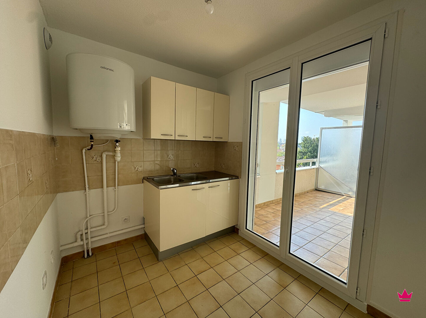 Au quatrième étage d'une résidence avec ascenseur, le logement s'ouvre sur une lumineuse pièce de vie avec coin cuisine, donnant sur un balcon ainsi qu'une salle de bains avec WC.